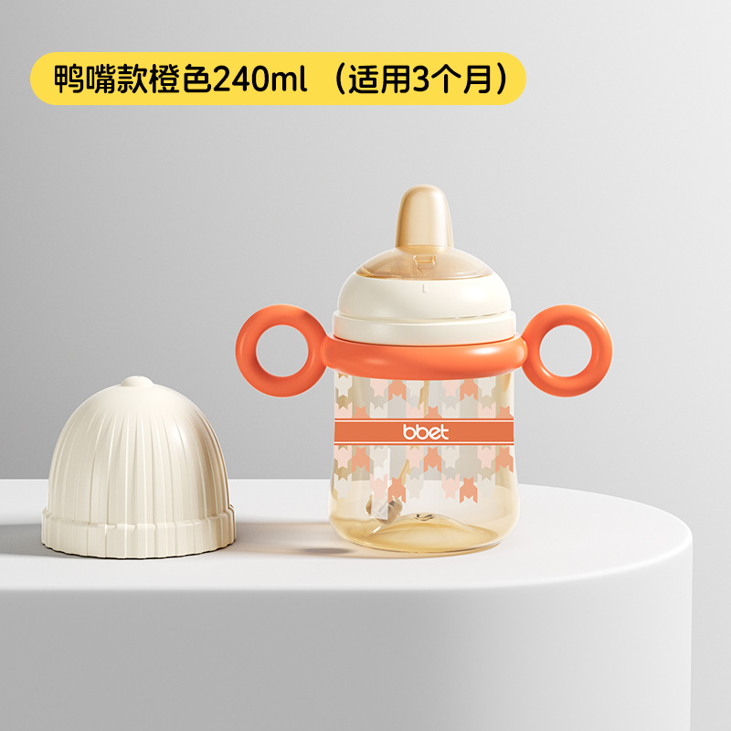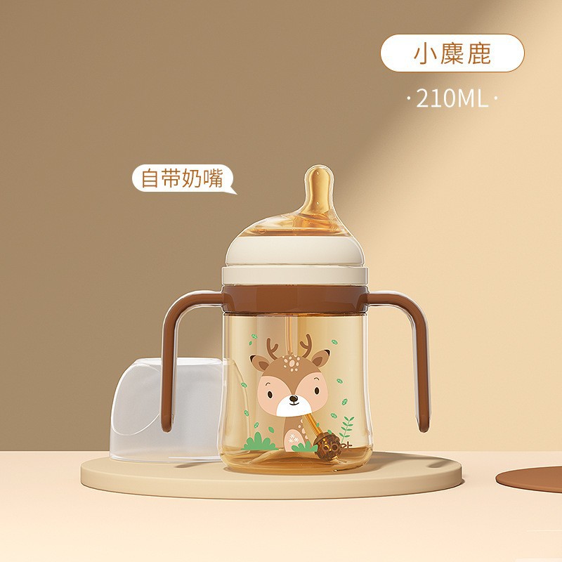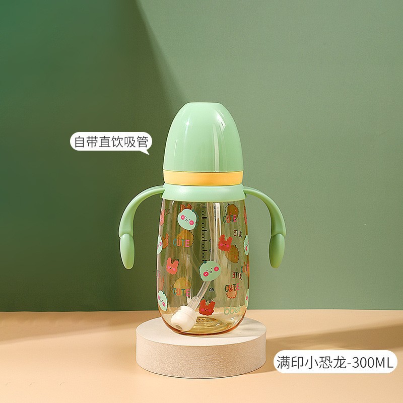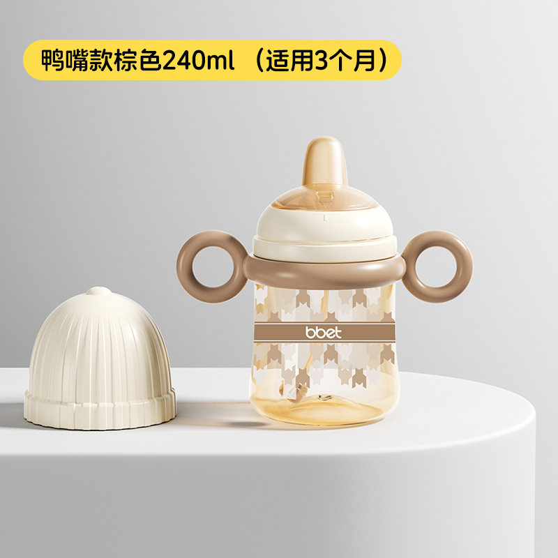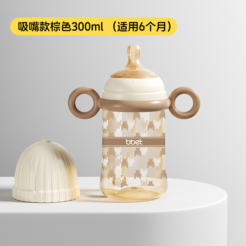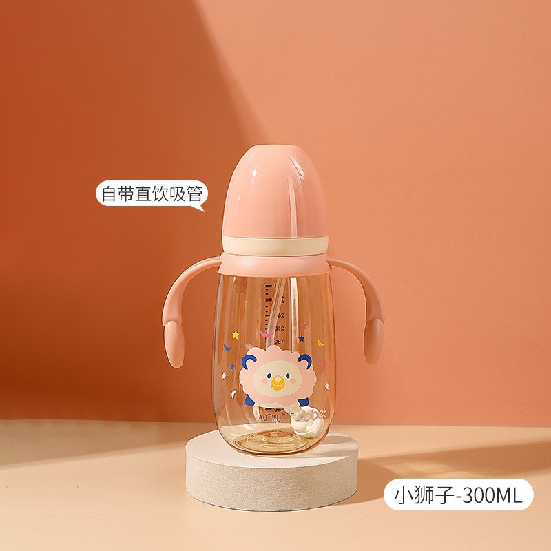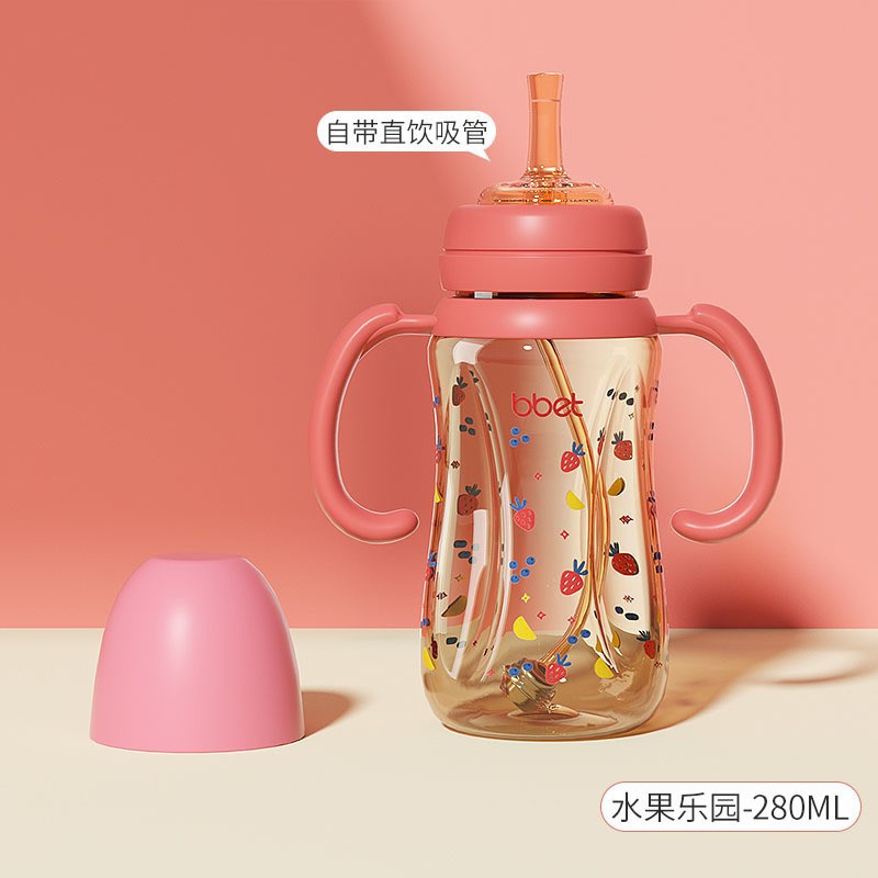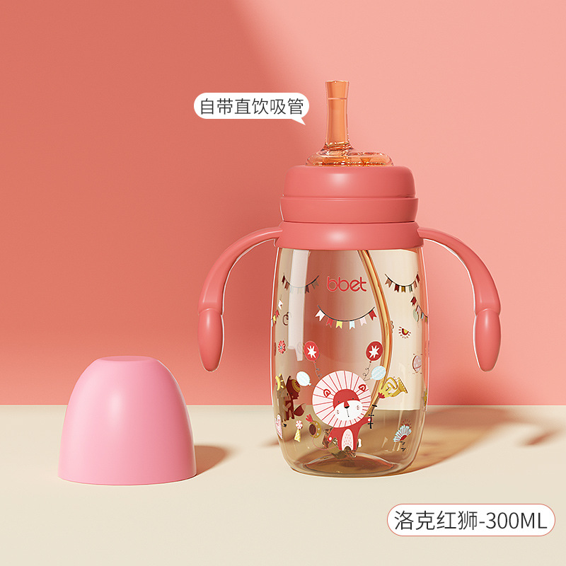 巴比象儿童吸管奶瓶1-3带柄刻度PPSU学饮杯防呛防漏防摔宽口奶瓶