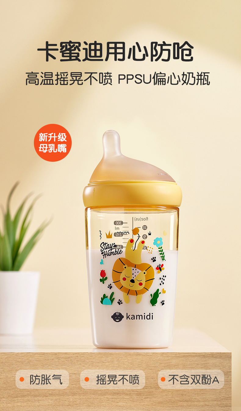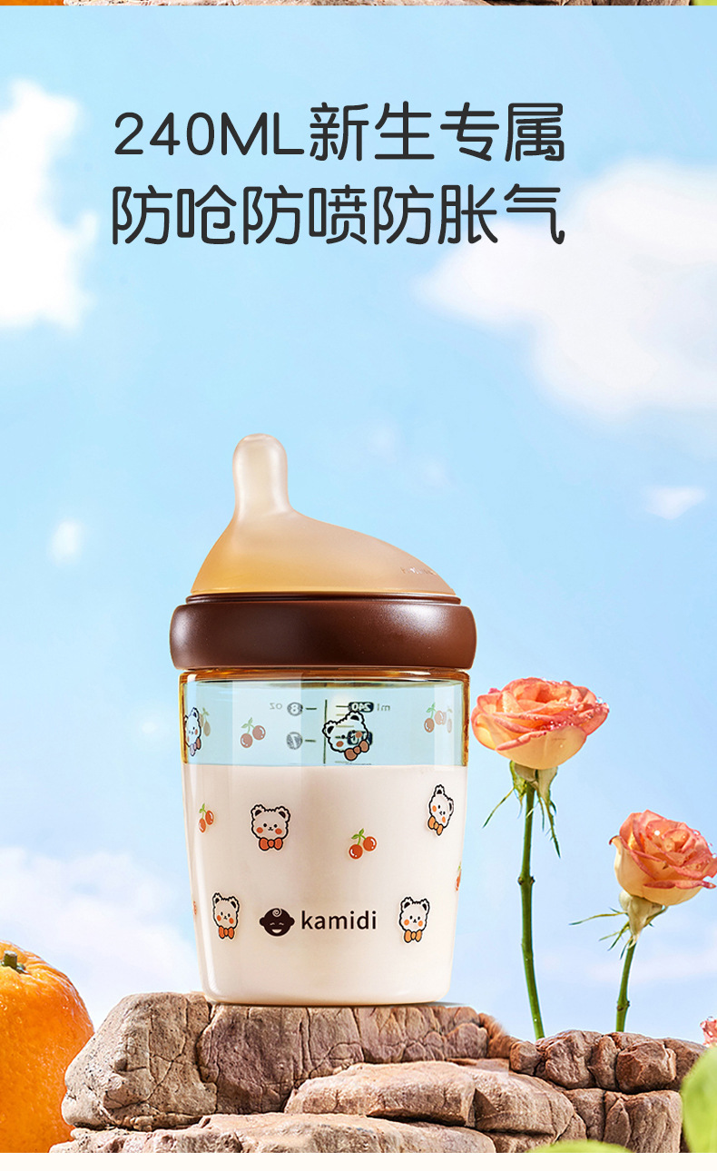 卡蜜迪kamidi奶瓶新生婴儿宝宝喝奶防呛歪偏心头奶嘴宽口径防胀气