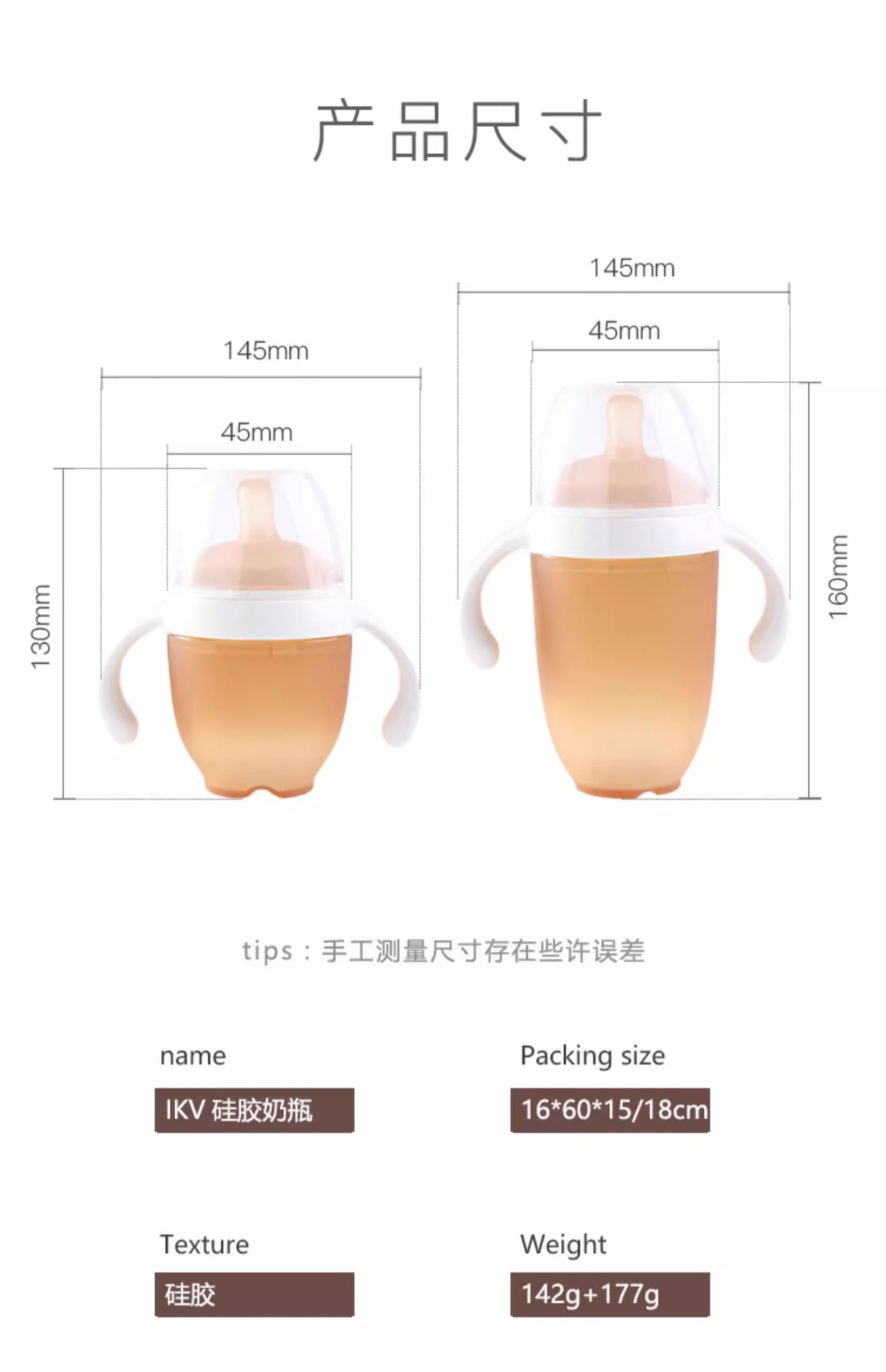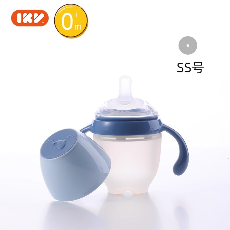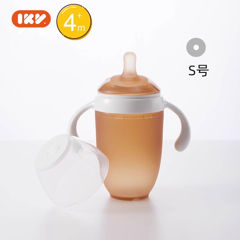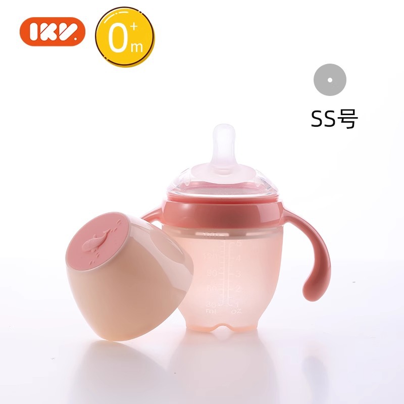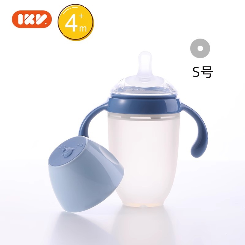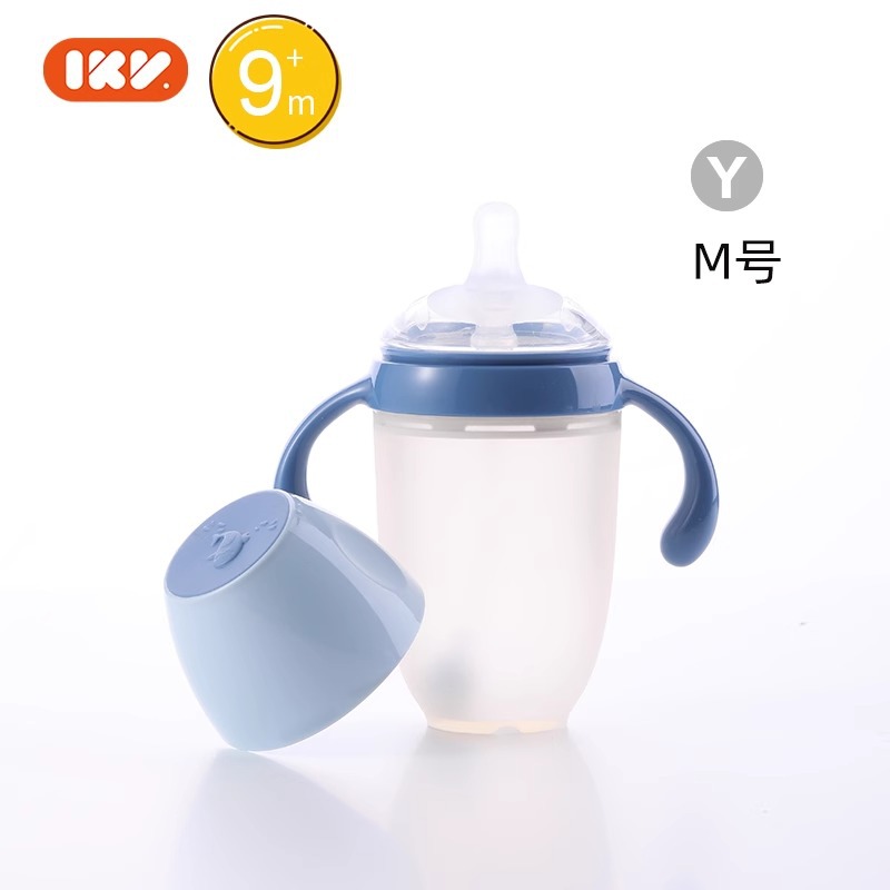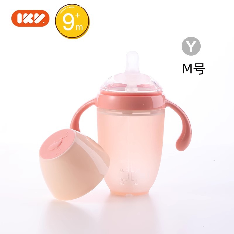 爱咔威IKV婴儿奶瓶防胀气食品级硅胶带手柄宽口径240ml仿母乳
