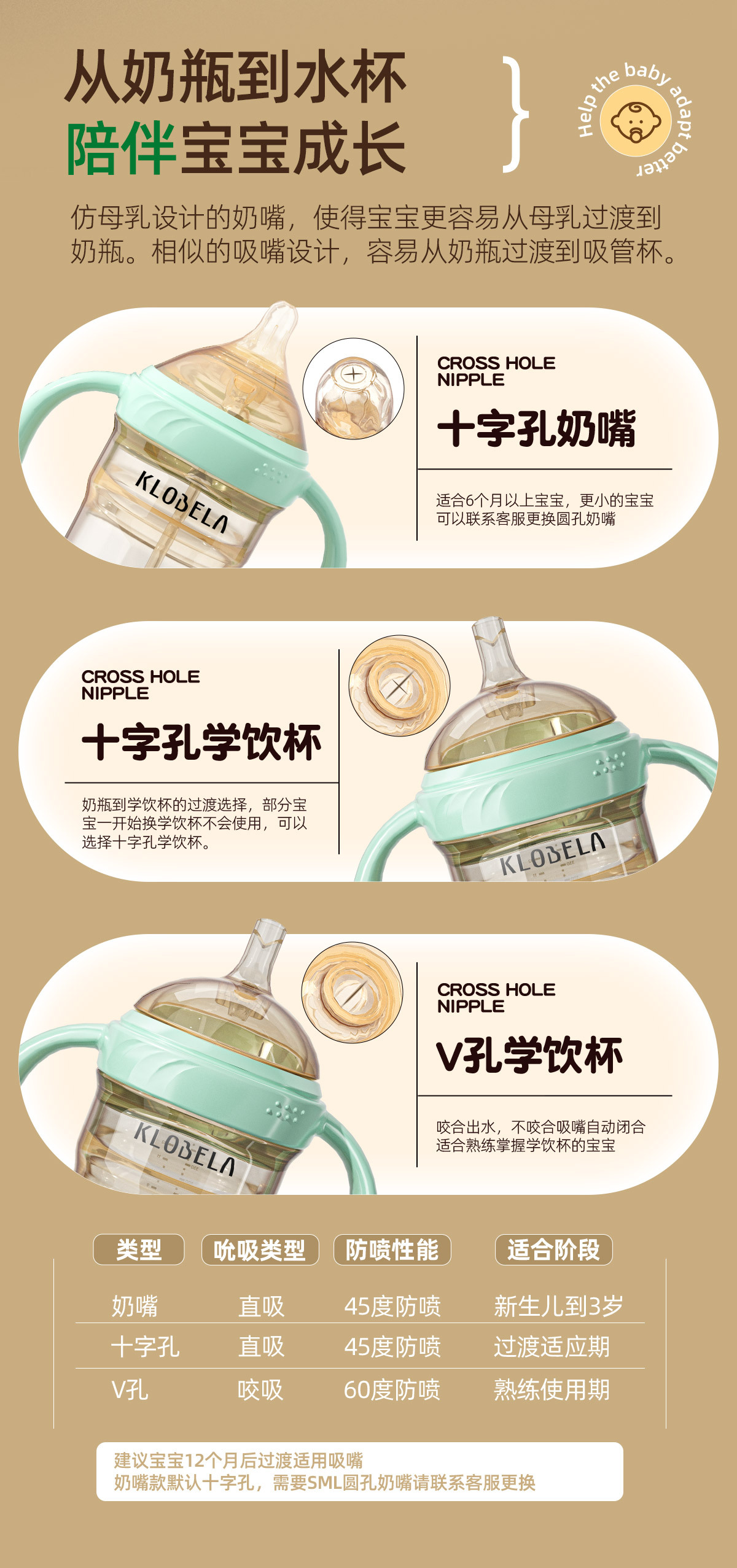 - 绿260ml奶瓶【配一个奶嘴一个吸嘴】