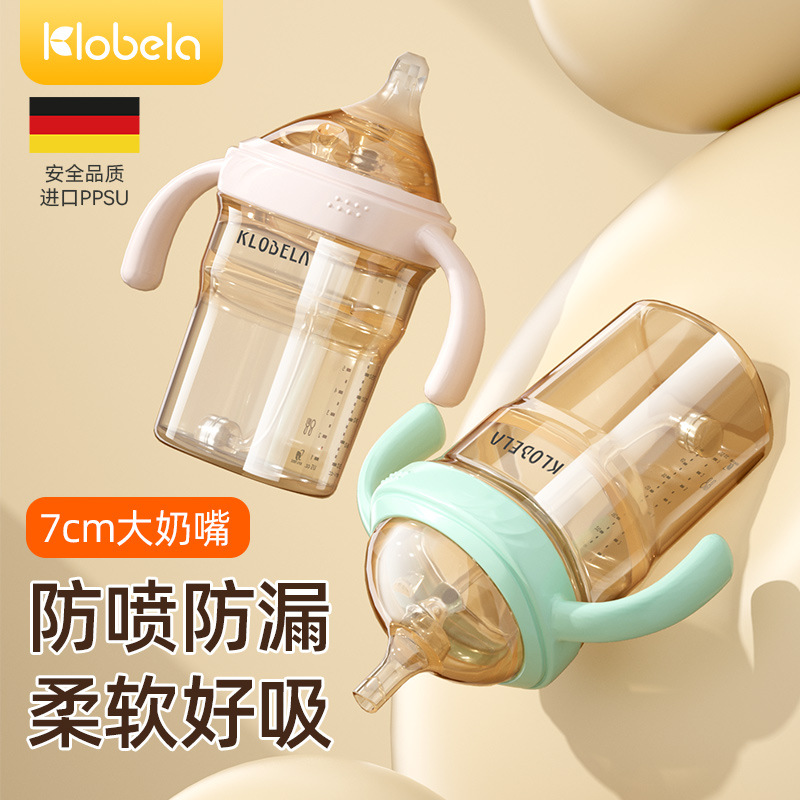 可拉贝拉婴儿ppsu吸嘴水杯大容量大口径方型奶瓶防呛耐摔宝宝断奶