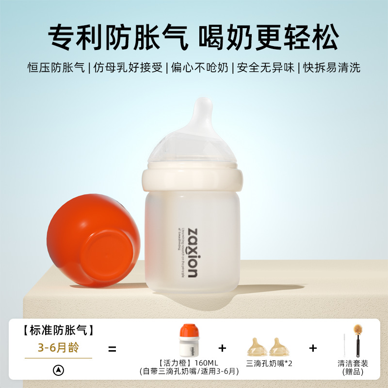- 【活力橙】160ml+三滴孔奶嘴*2+清洁套装
