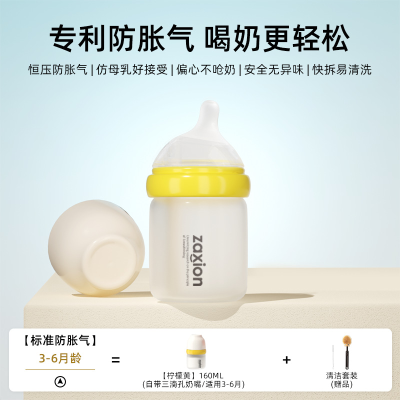 - 【柠檬黄】160ml+三滴孔奶嘴*2+清洁套装