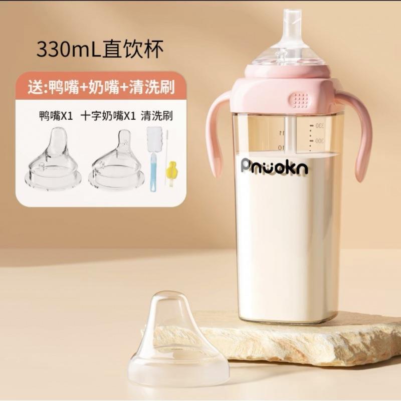 - 【直饮3用】粉色330ml送:鸭嘴+十字奶嘴+清洗刷⚑♜