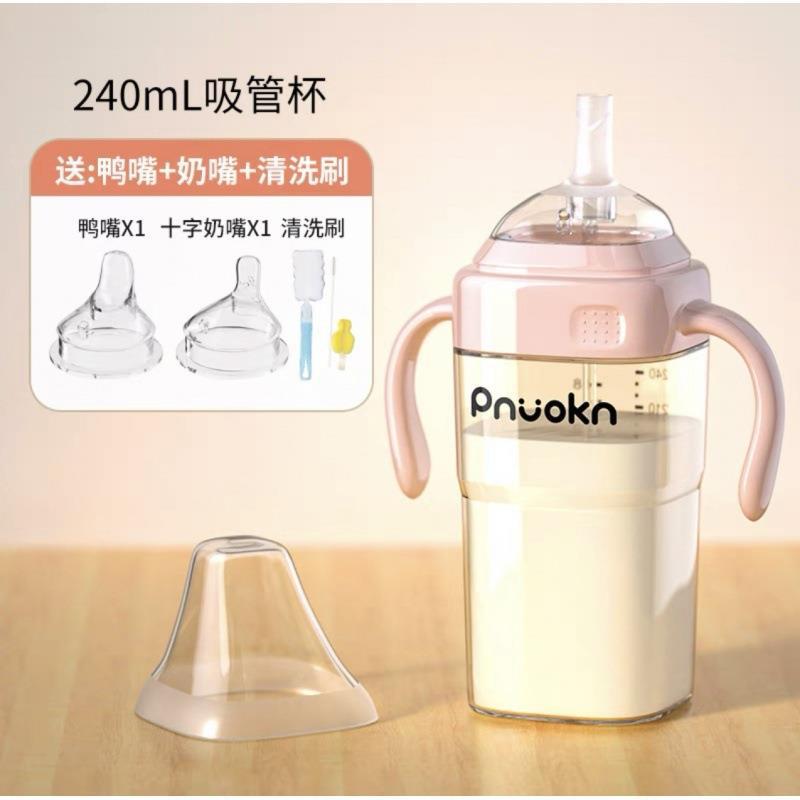 - 【吸管奶瓶】粉色240ml送:吸嘴2个+清洗刷⚑♜
