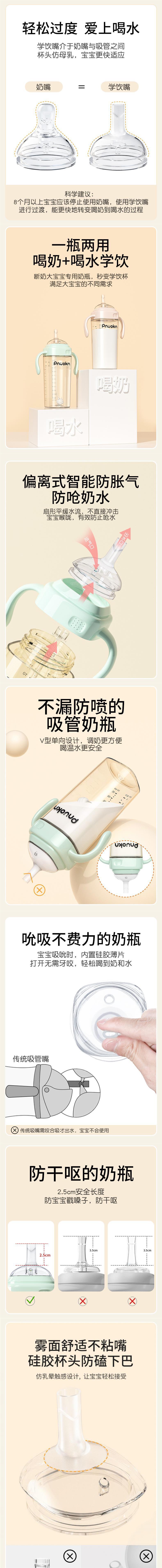 - 【直饮奶瓶】绿色330ml送:吸嘴2个+清洗刷⚑♜