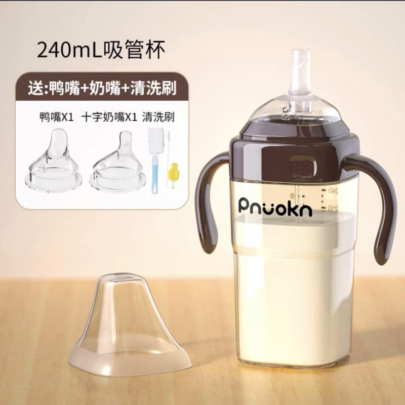 - 【直饮3用】棕色240ml送:鸭嘴+十字奶嘴+清洗刷⚑♜