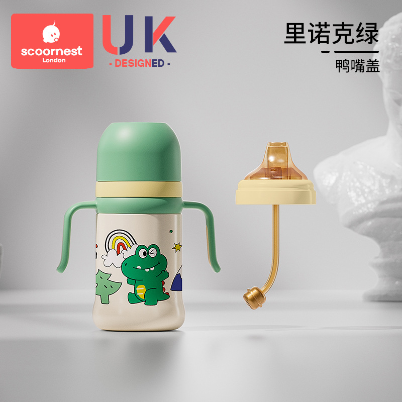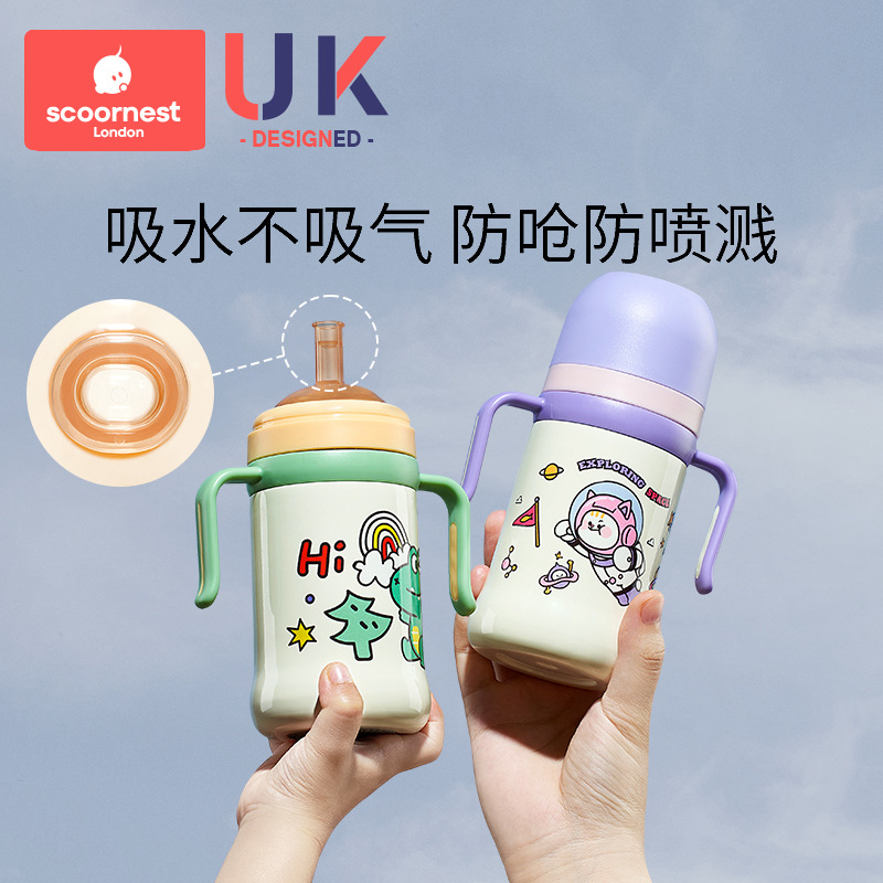 科巢儿童保温杯带吸管婴幼儿鸭嘴学饮杯宝宝一岁以上防喷溅奶瓶外