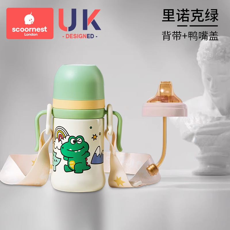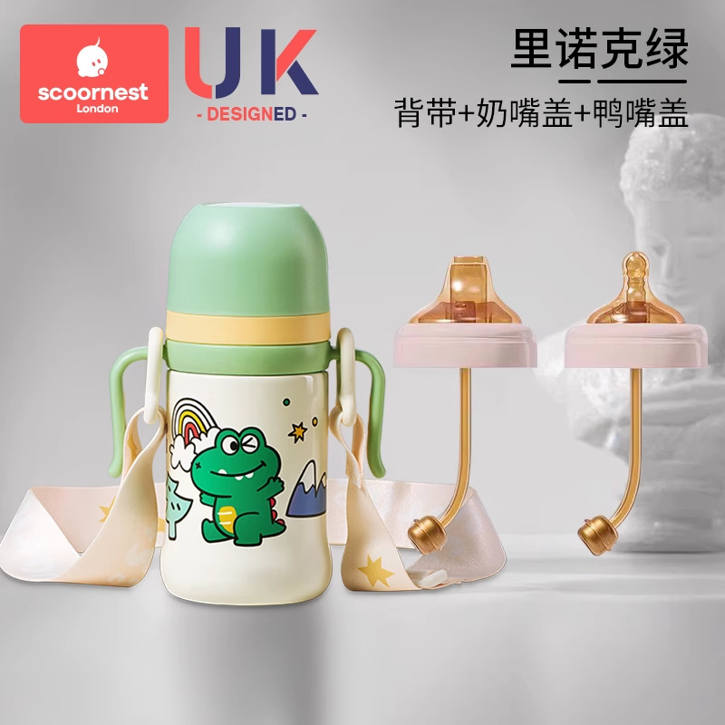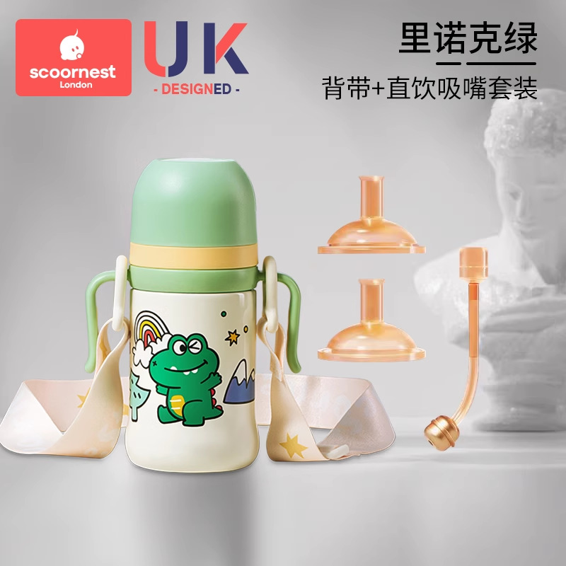 - 【纳米银--背带款】里诺克绿【直饮盖/带重力球款】+鸭嘴盖+背带