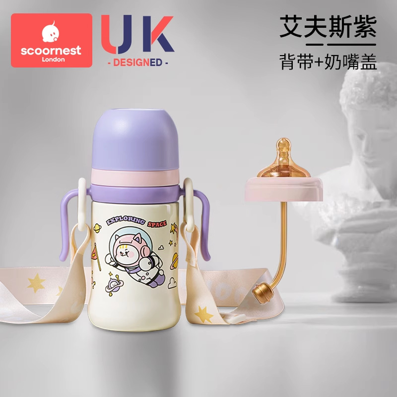 - 【纳米银--背带款】艾夫斯紫【直饮盖/带重力球款】+奶嘴盖+背带