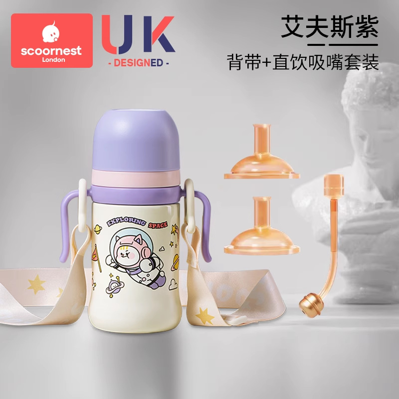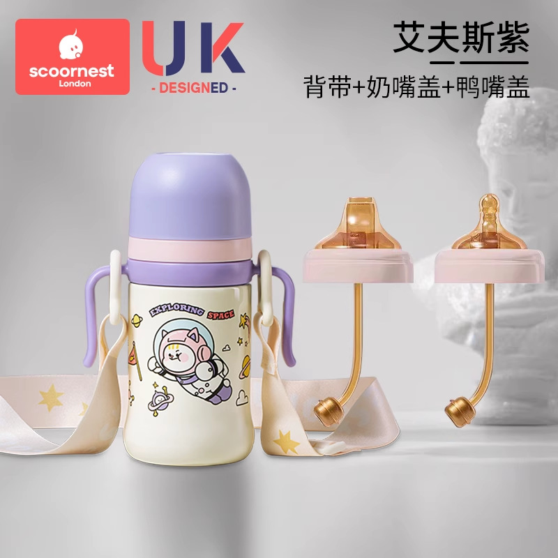 - 【纳米银--背带款】艾夫斯紫【直饮盖/带重力球款】+鸭嘴盖+背带