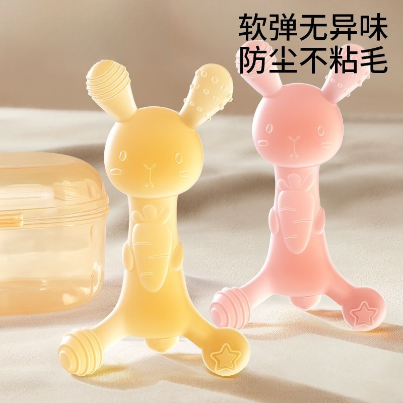小兔子牙胶婴儿磨牙棒安抚不粘毛硅胶出牙期防吃手可水煮玩具