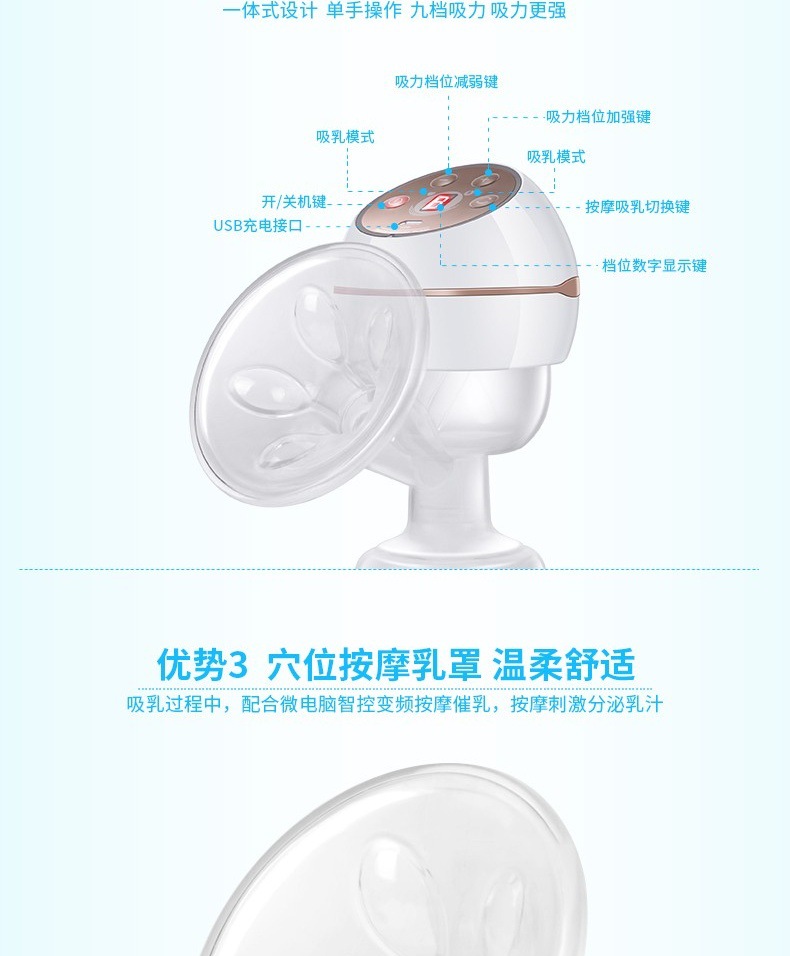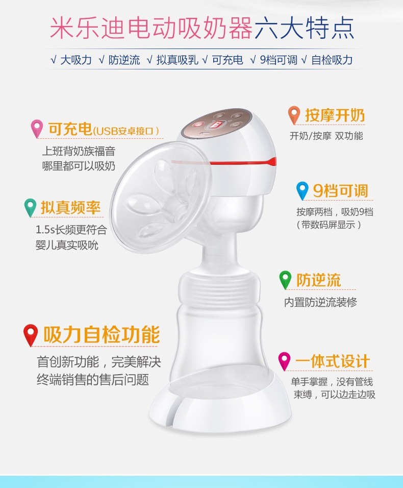 米乐迪电动吸奶器催乳超静音大吸力产妇挤奶按摩器防逆流吸奶器