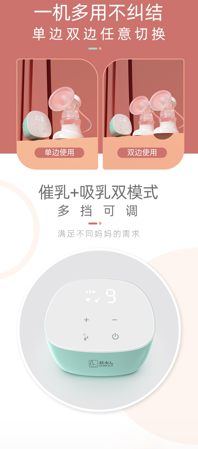 好女人双边电动吸奶器全自动吸按摩可免手扶吸奶器