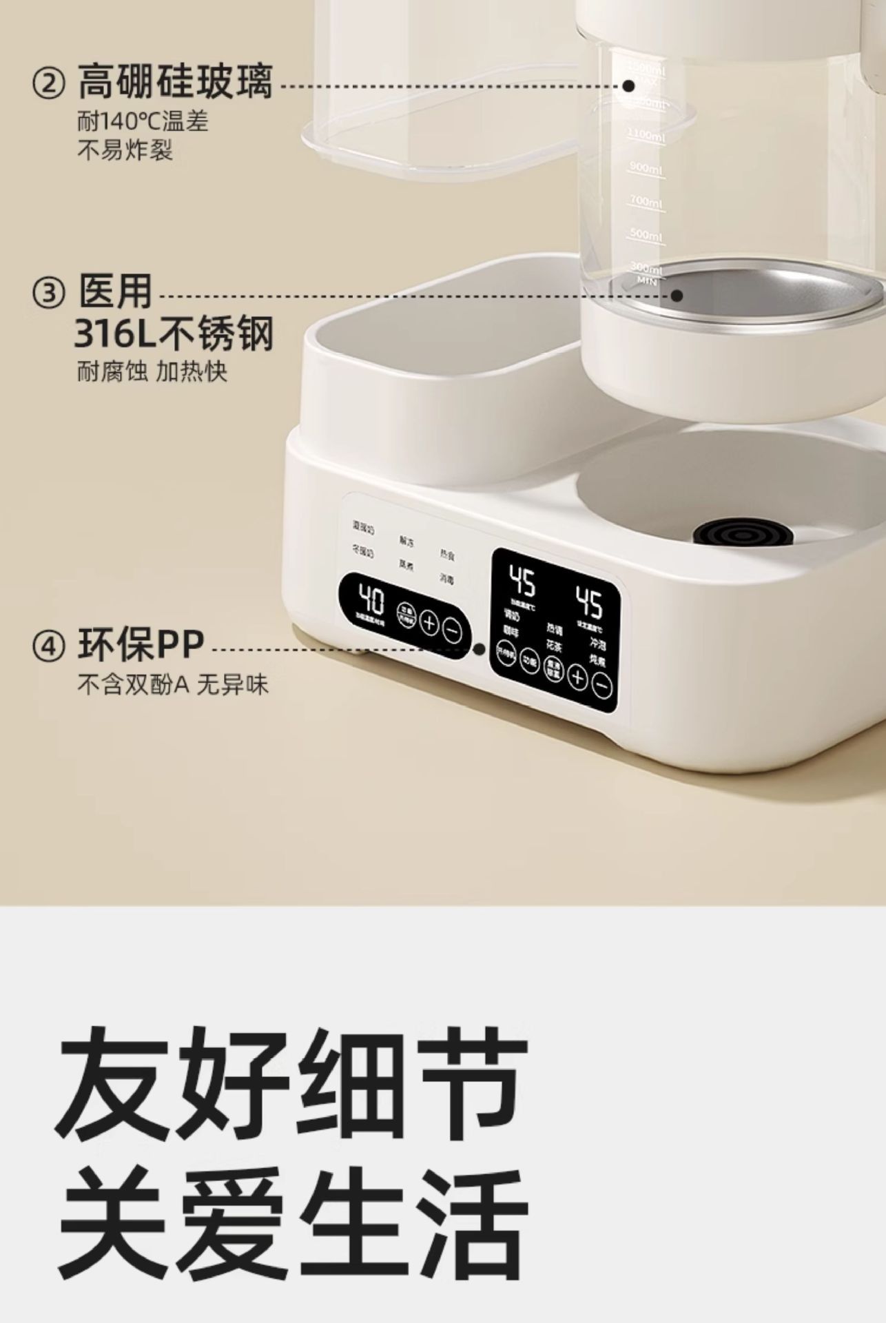 1.5L【旗舰款】纯白+双层消毒/316L发热盘/小夜灯/暖奶篮