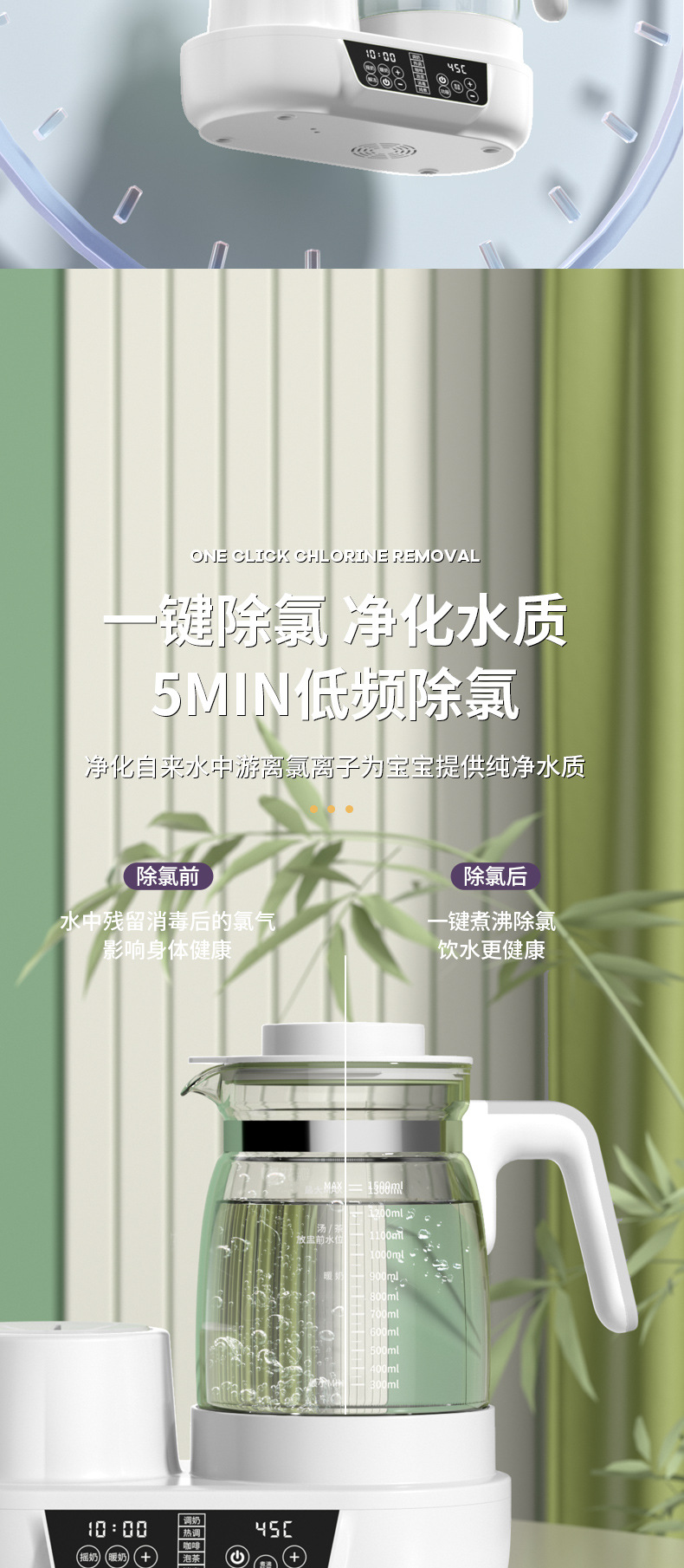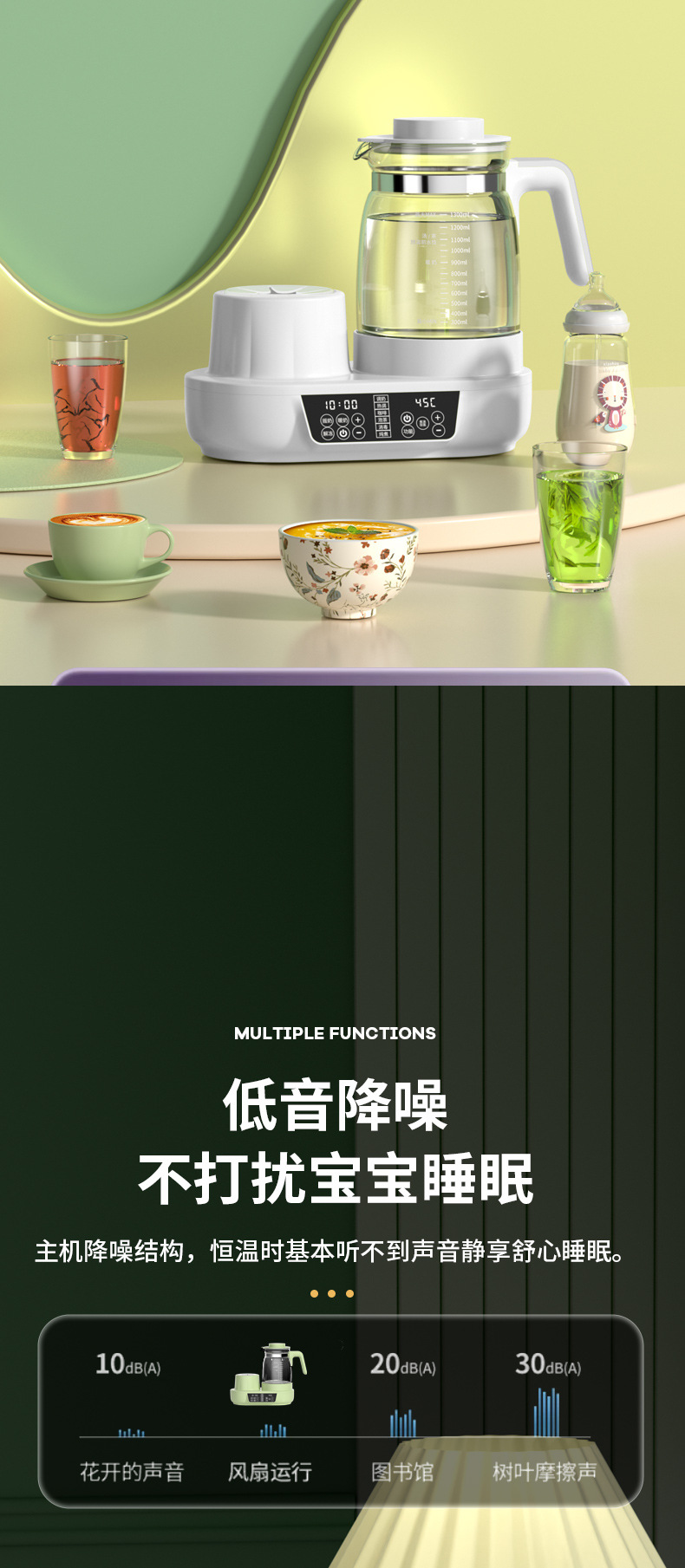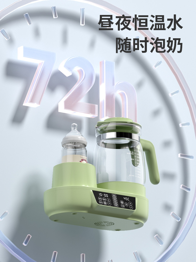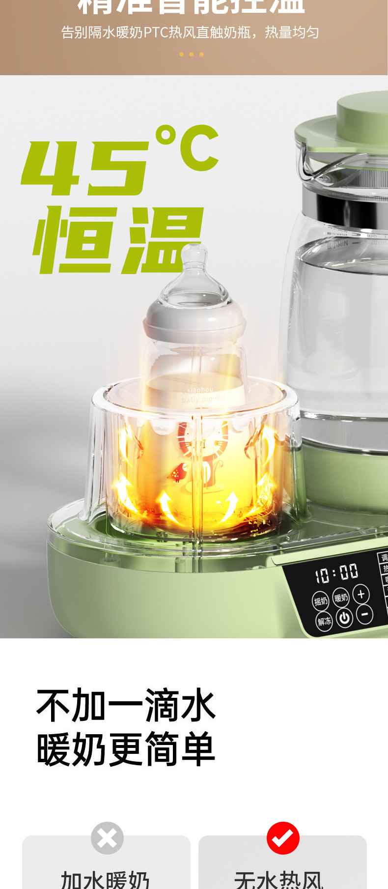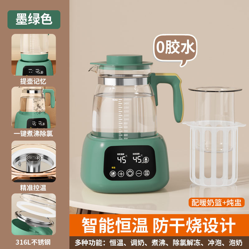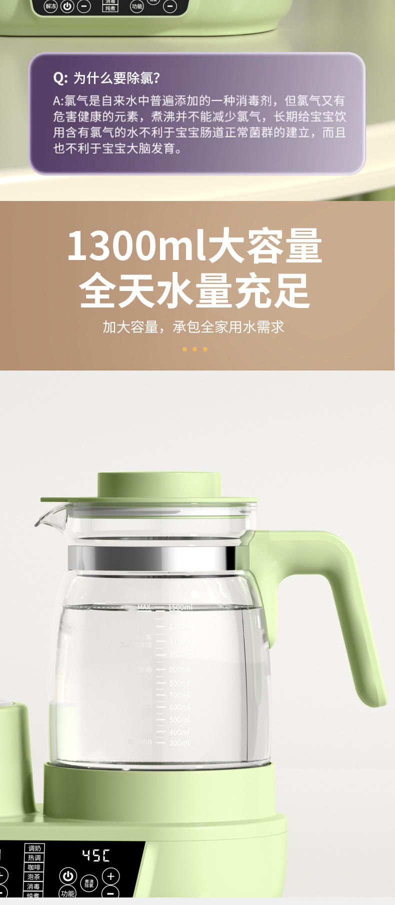 - 1200ml果绿色8合1恒温泡奶+摇奶+无水暖奶+炖盅+解冻+消毒烘干