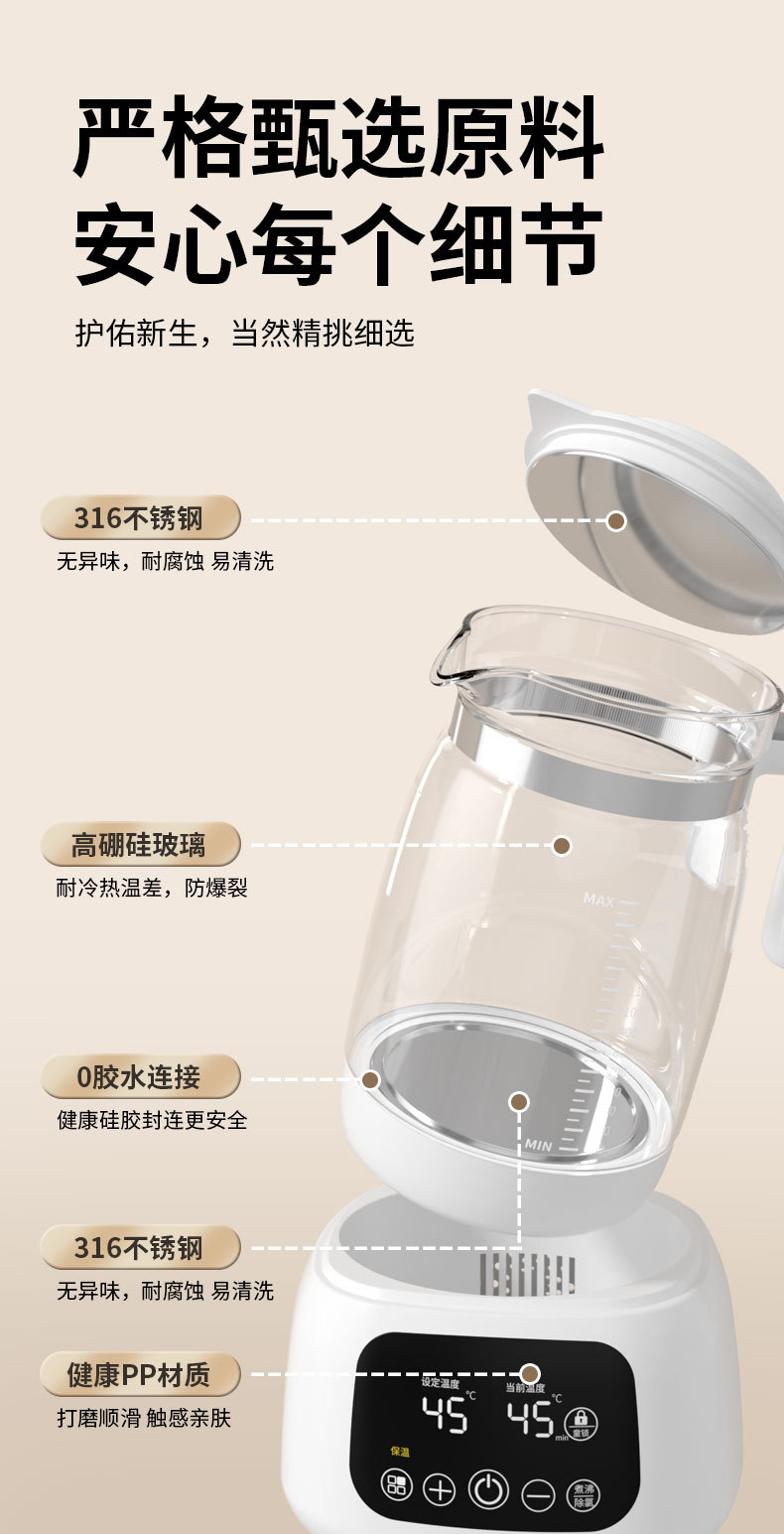 - 1200ml冰川白8合1恒温泡奶+摇奶+无水暖奶+炖盅+解冻+消毒烘干