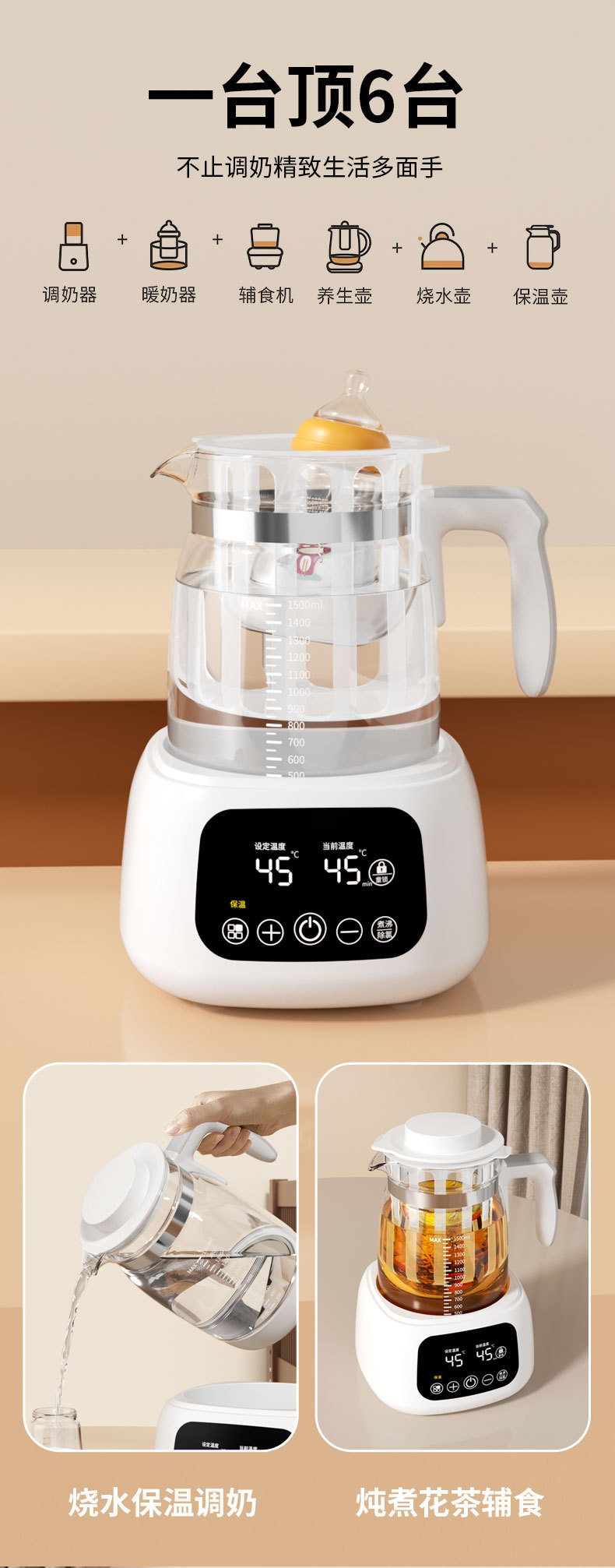 - 1200ml冰川白6合1恒温泡奶+摇奶+无水暖奶+消毒+烘干+解冻
