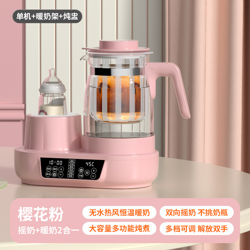 - 1200ml樱花粉8合1恒温泡奶+摇奶+无水暖奶+炖盅+解冻+消毒烘干
