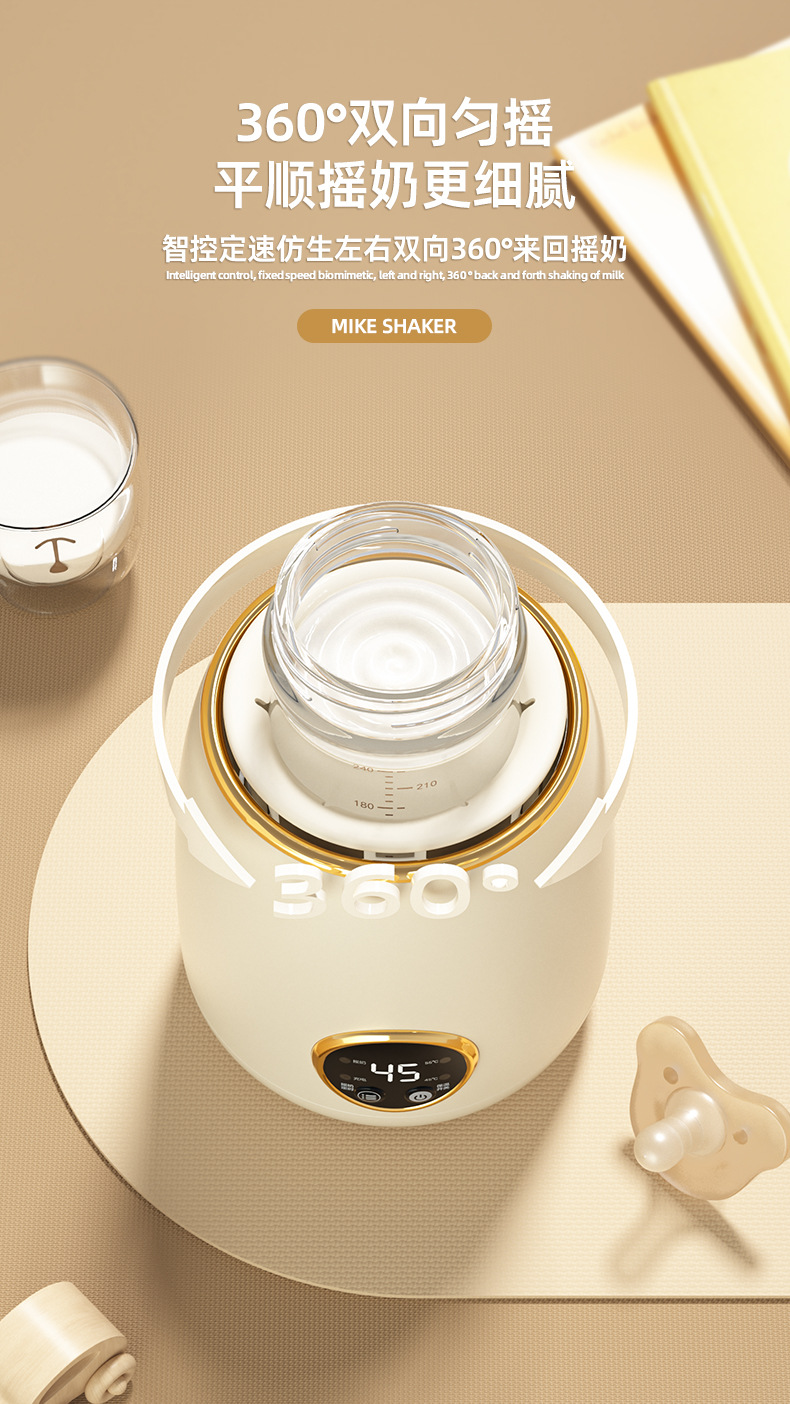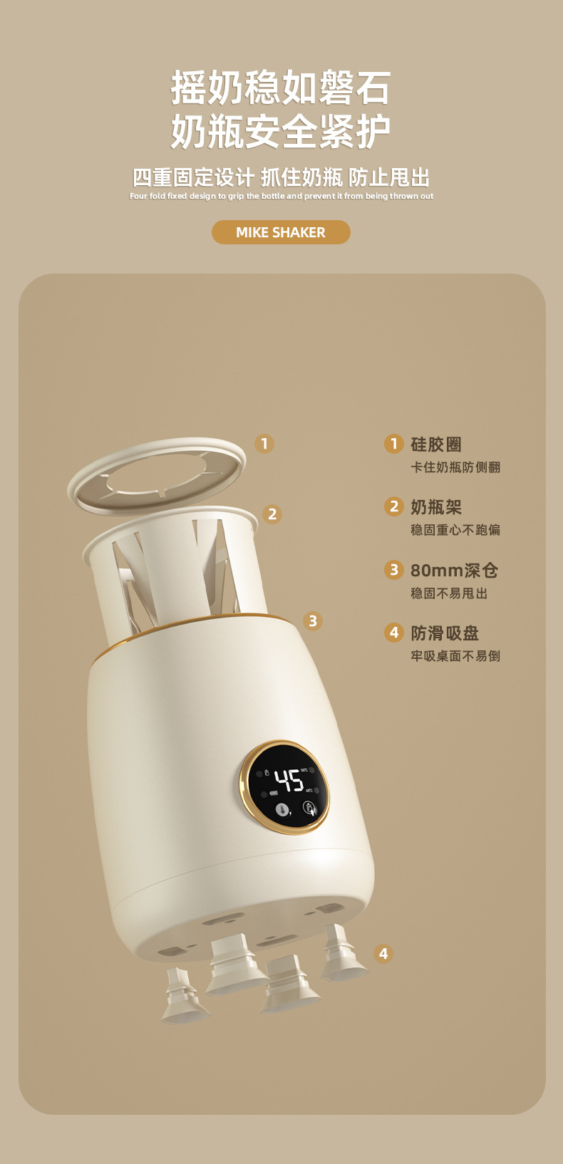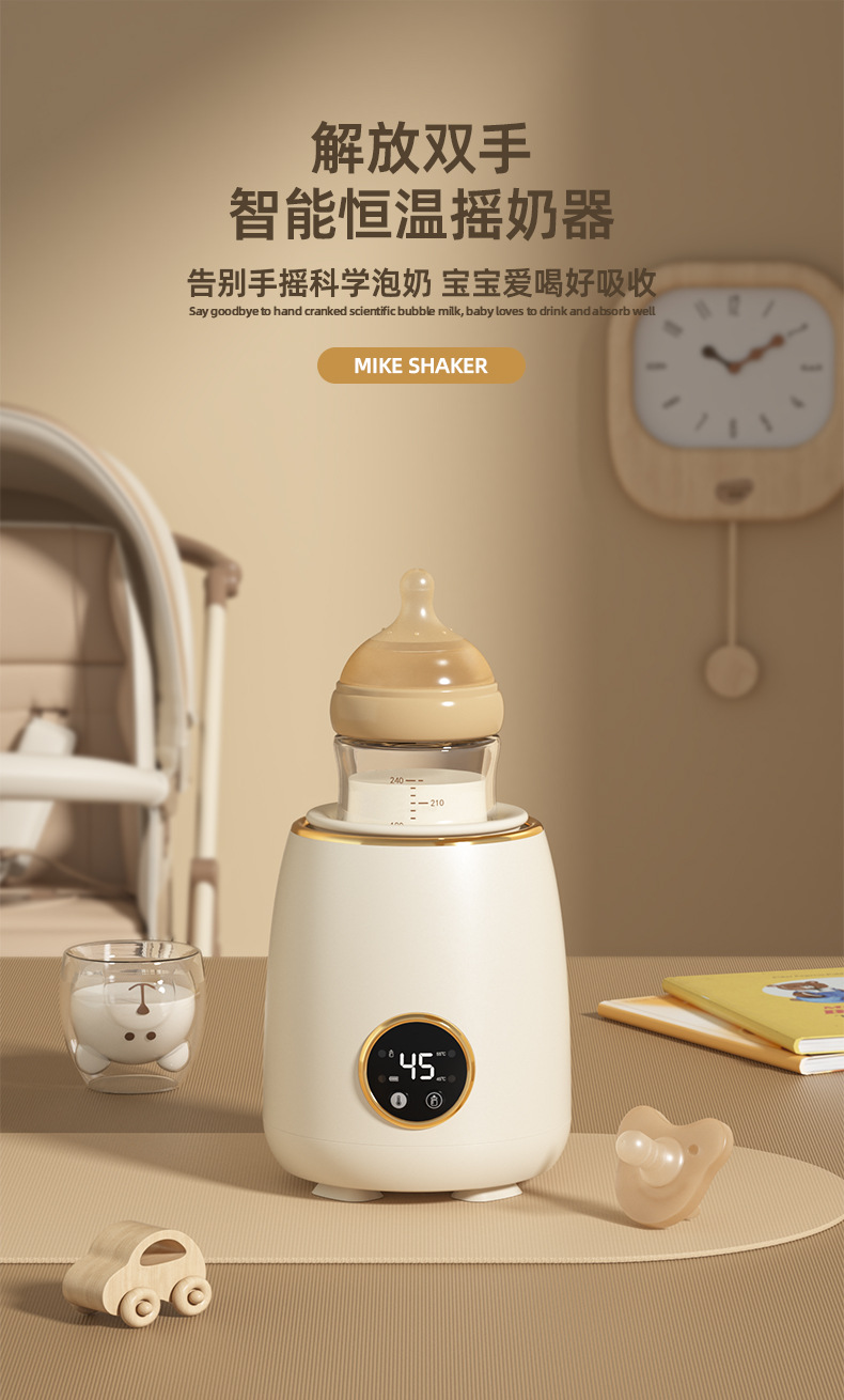 奶白色-升级恒温款【数字显示屏+6档摇奶】防倾倒