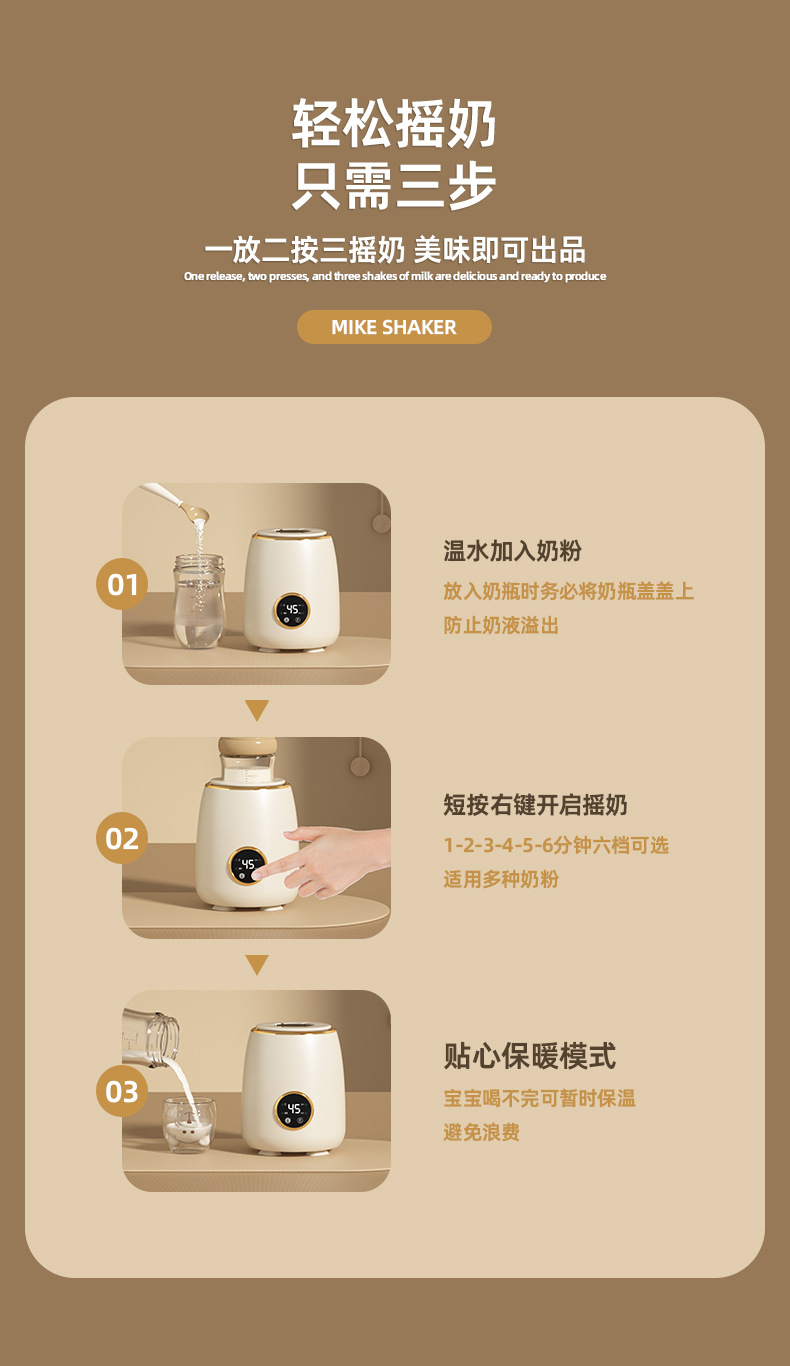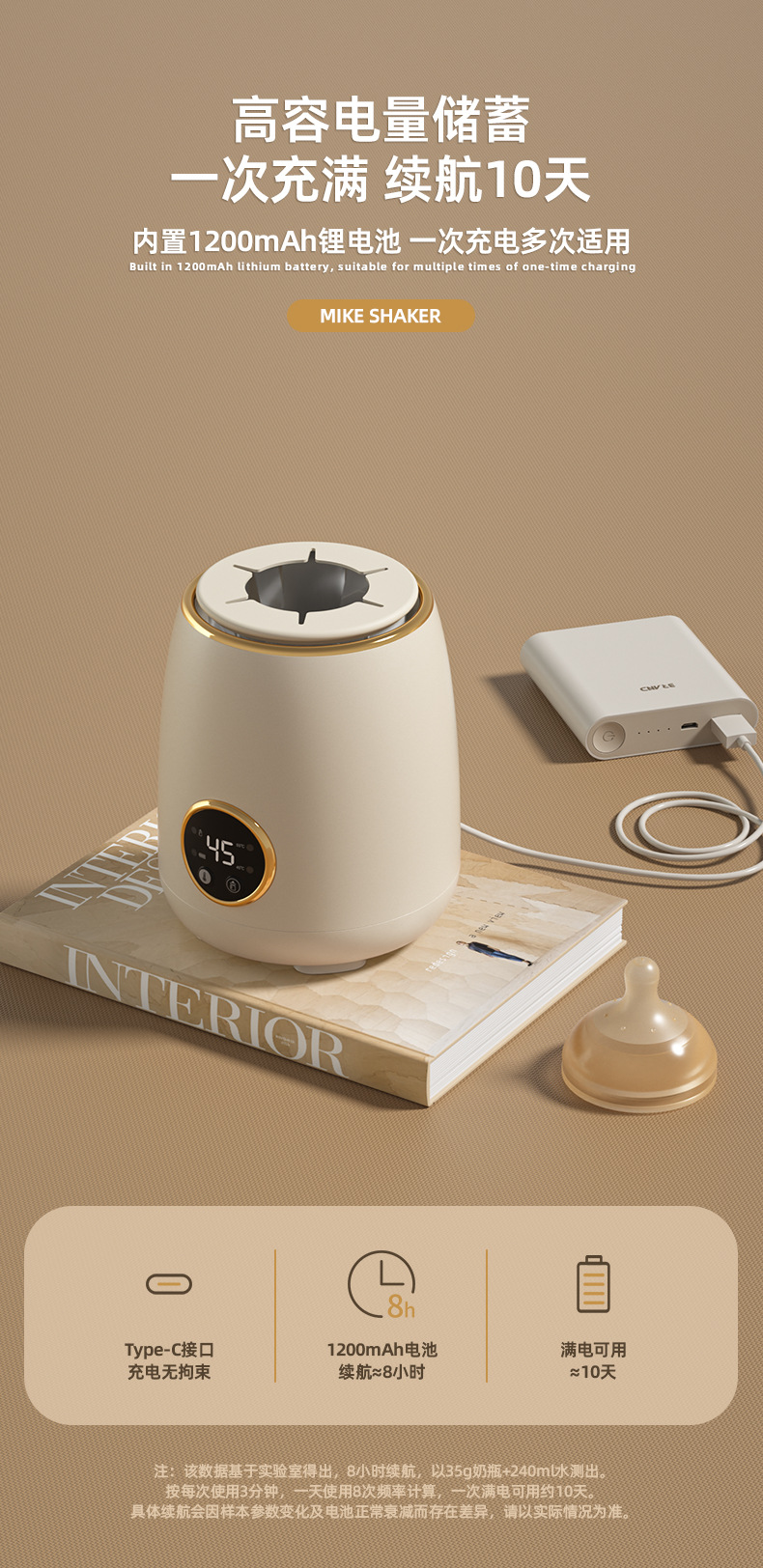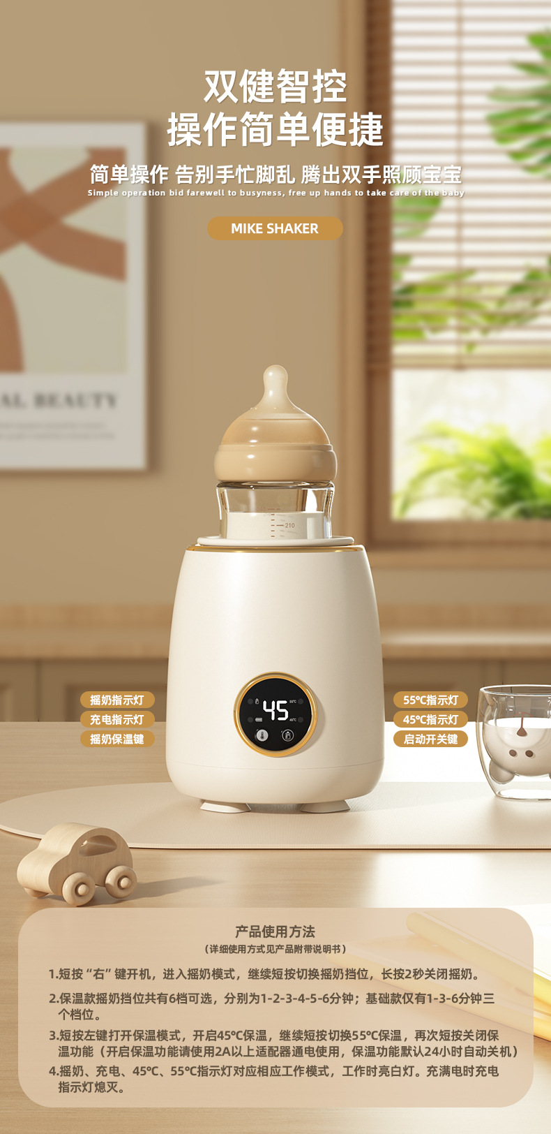 奶白色-升级恒温款【数字显示屏+6档摇奶】防倾倒