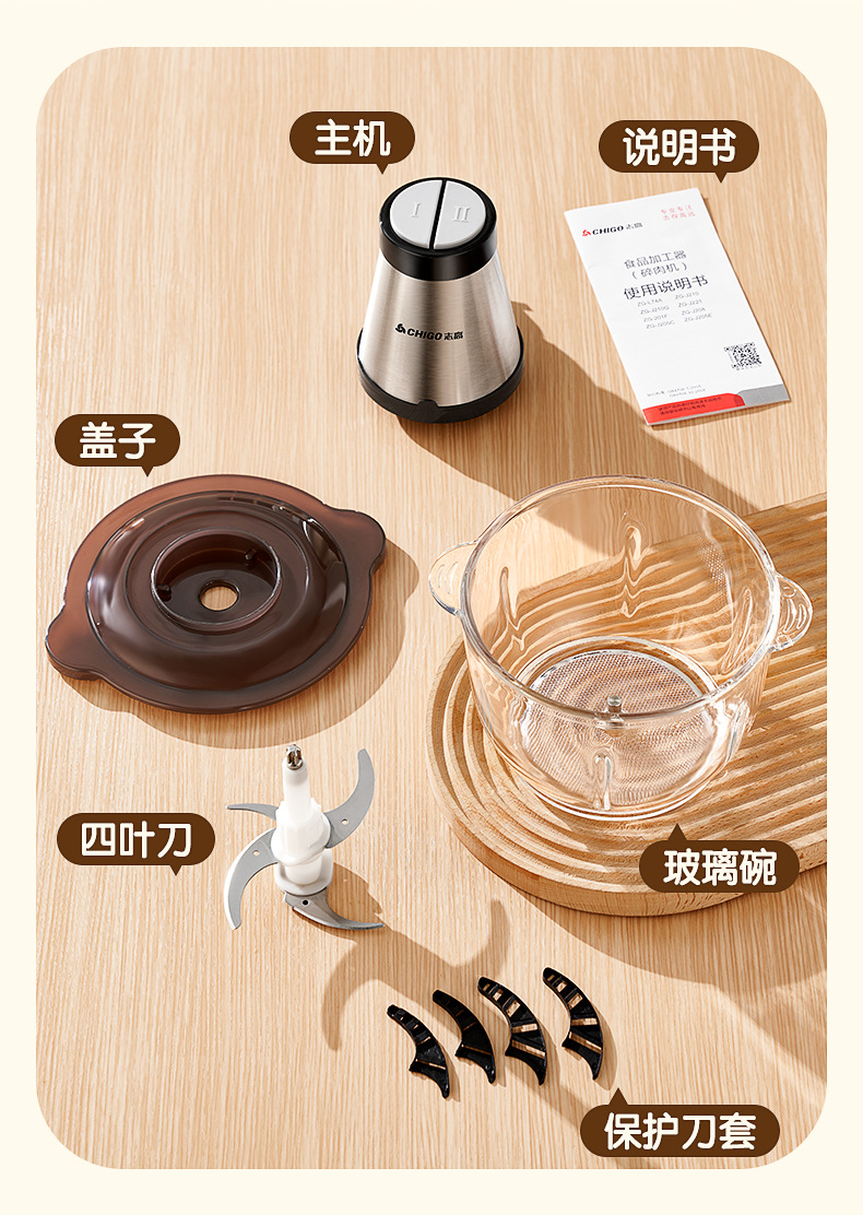标配款双刀玻璃碗1.8L