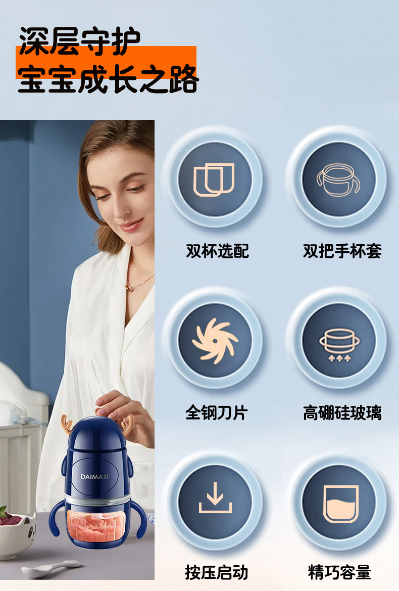 德国戴玛斯多功能辅食机婴儿家用料理机辅食绞肉机打蒜泥神器