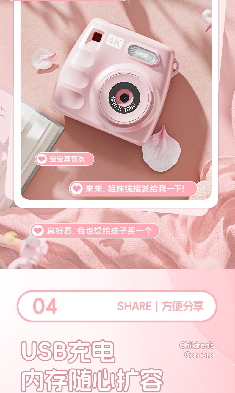 - 粉色-补光灯滤镜美颜录像前后双摄-64G高速内存卡-可拍1万张
