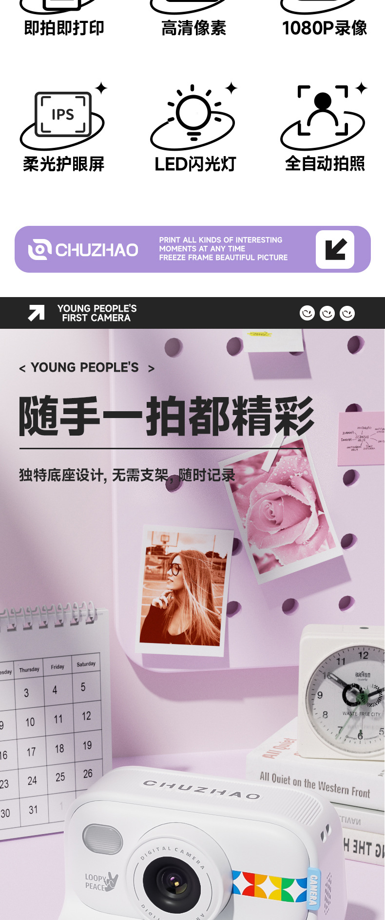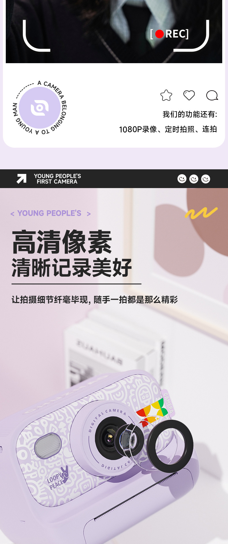 儿童相机可拍照打印玩具摄像机拍立得数码照相机便携打印相机