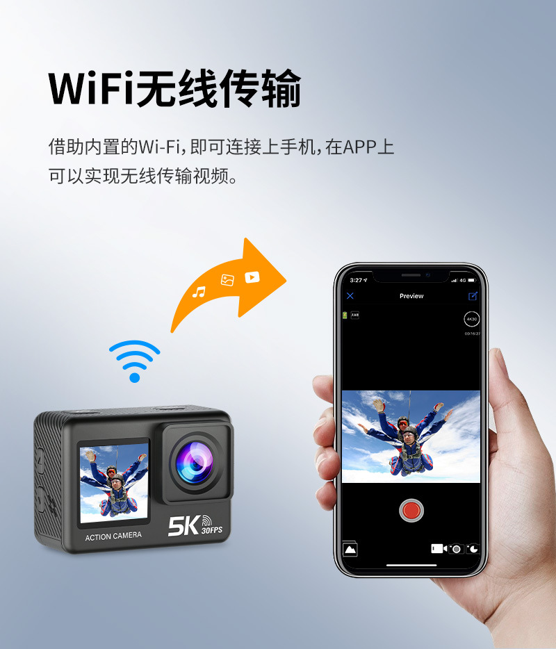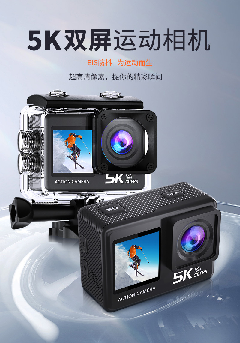 新款5K运动相机防水防抖高清拍摄户外骑行记录仪滑雪钓鱼摄影机