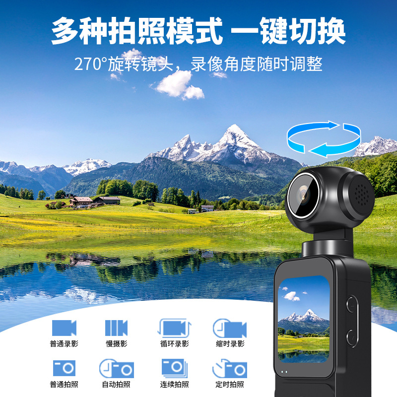 高清5K口袋户外骑行相机防抖触摸电动旋转手持照像运动相