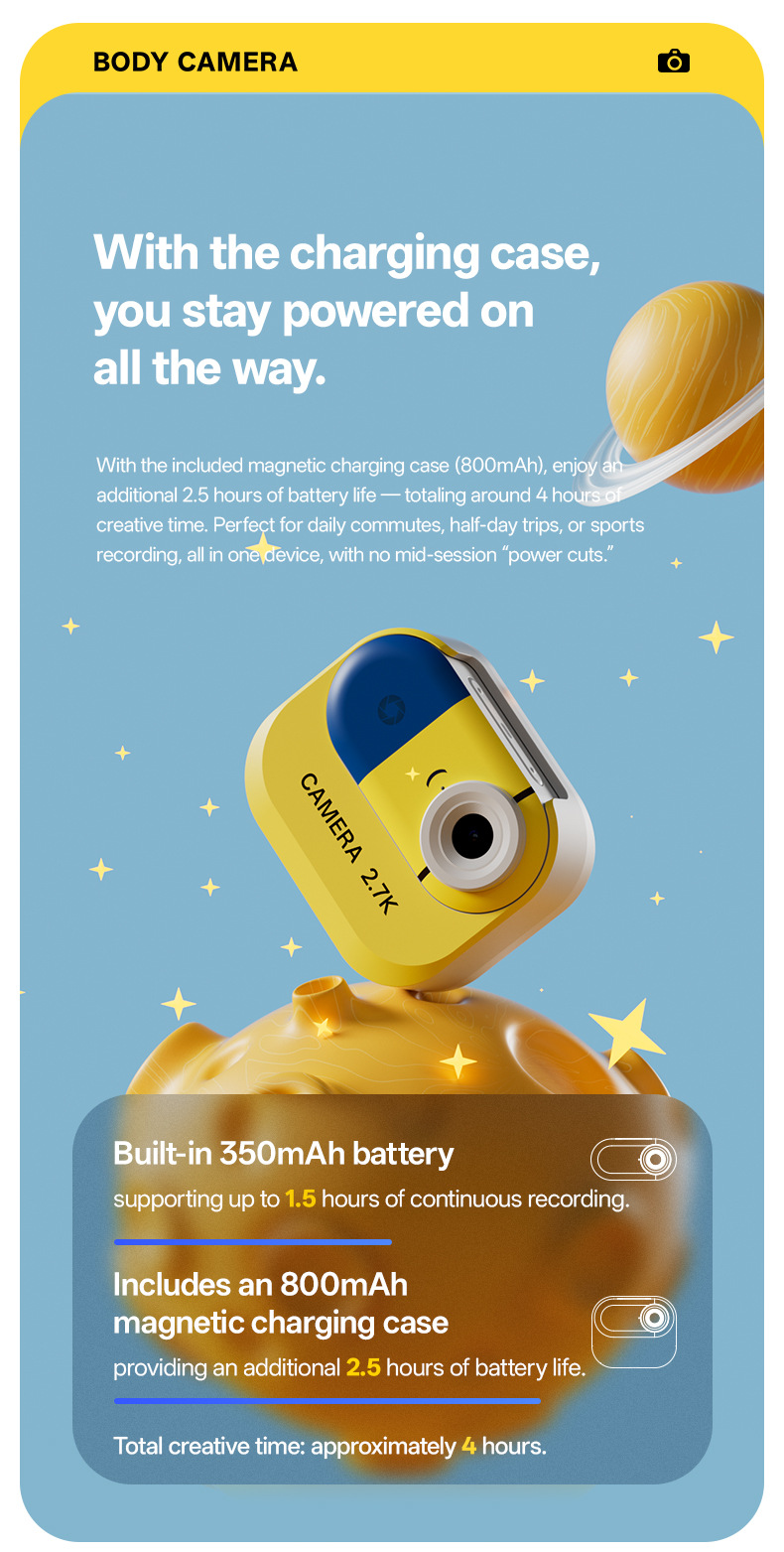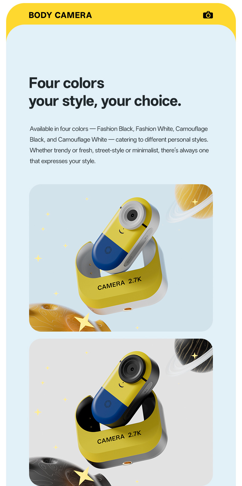 2.7K高清宠物记录仪拇指相机户外胸前钓鱼便携骑行运动摄像机