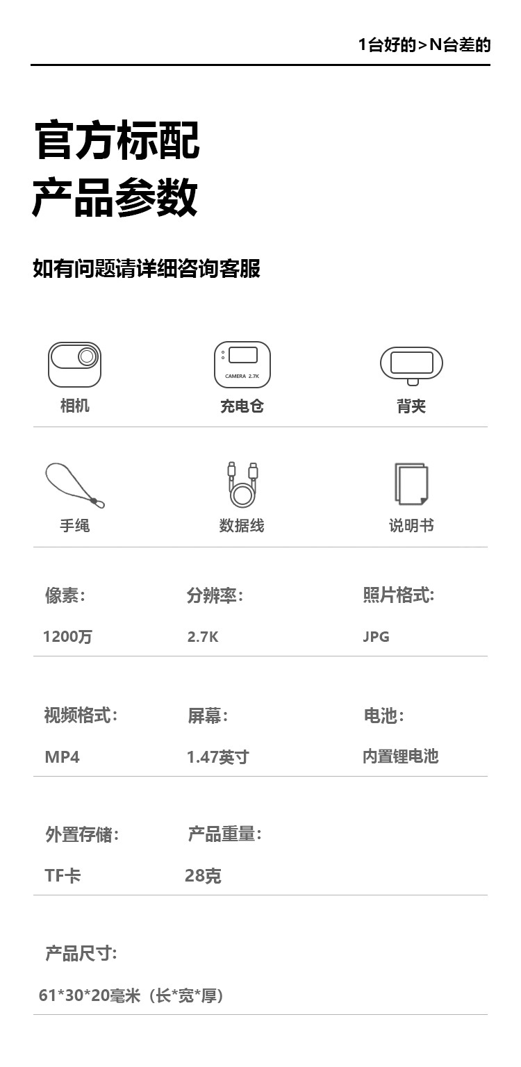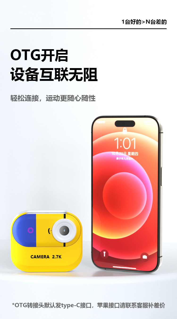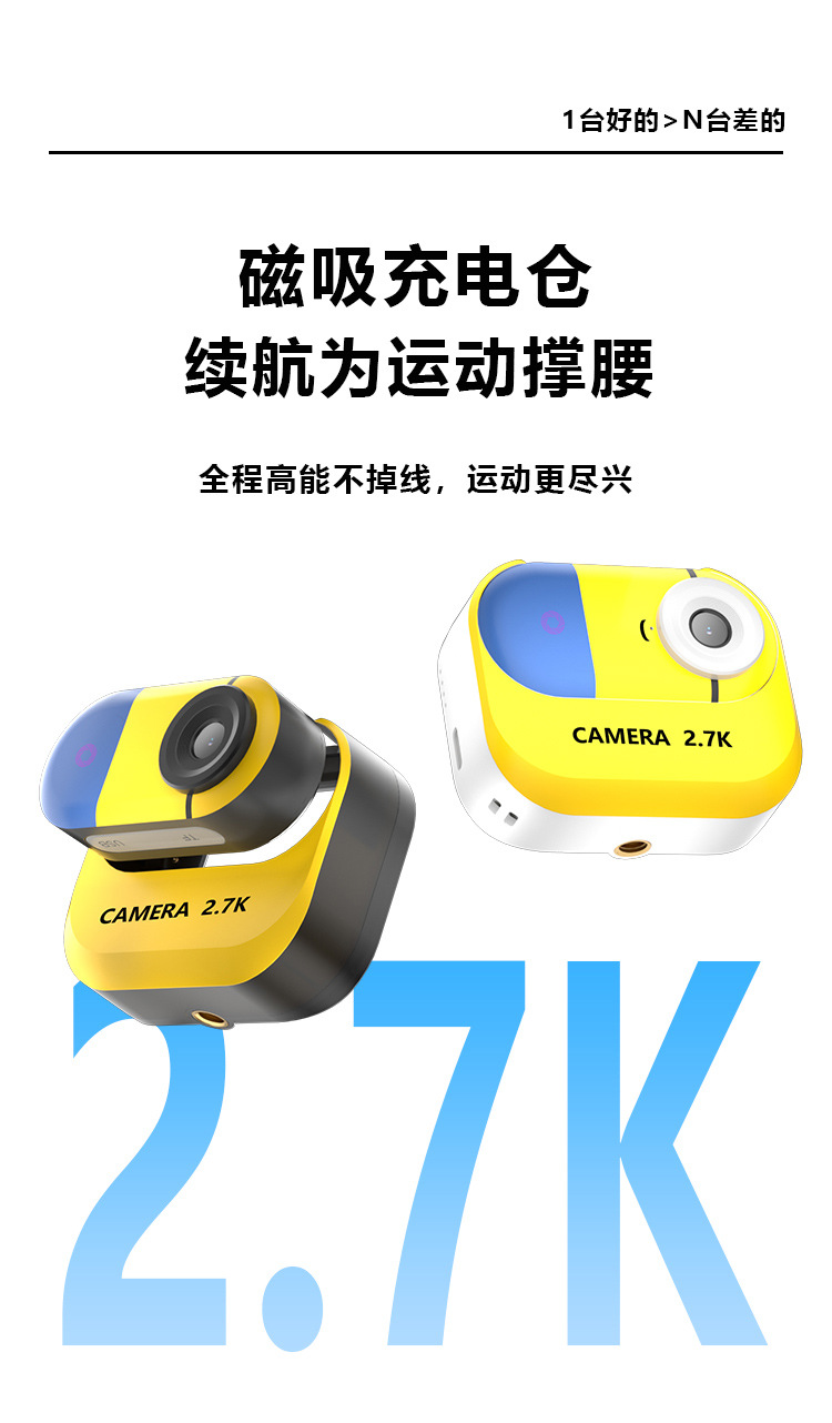 2.7K超清运动拇指相机磁吸摩托车骑行车记录仪小型校园生活相机