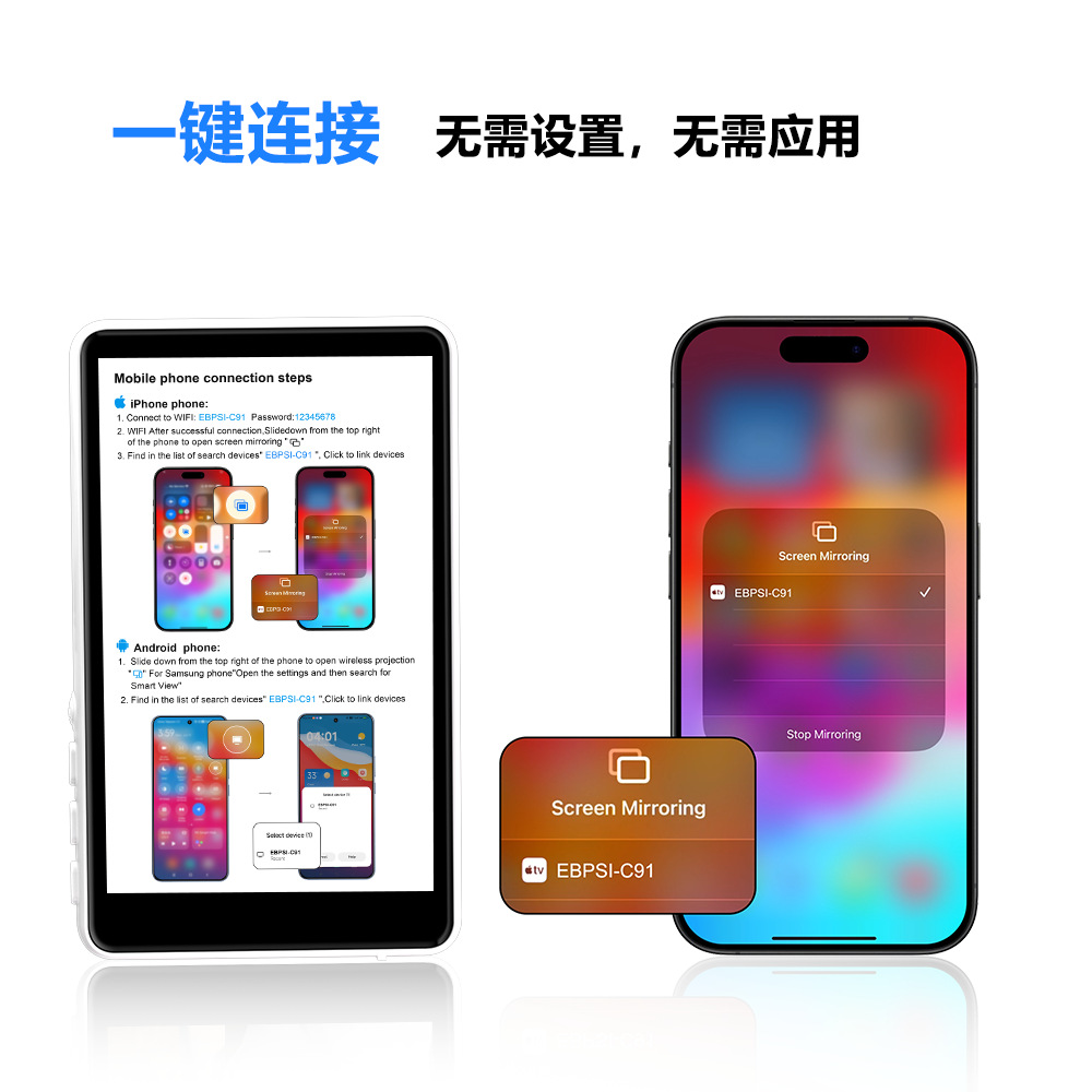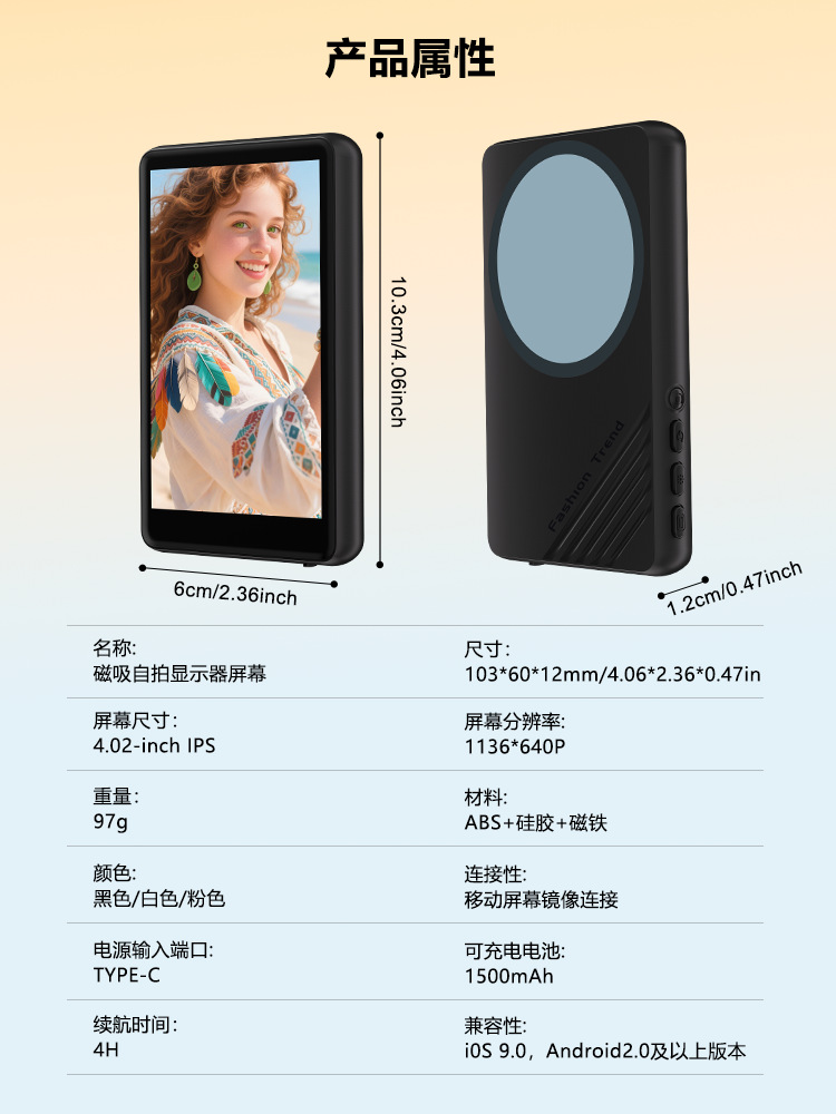 手机同屏器磁吸自拍屏无线蓝牙手机后置自拍屏