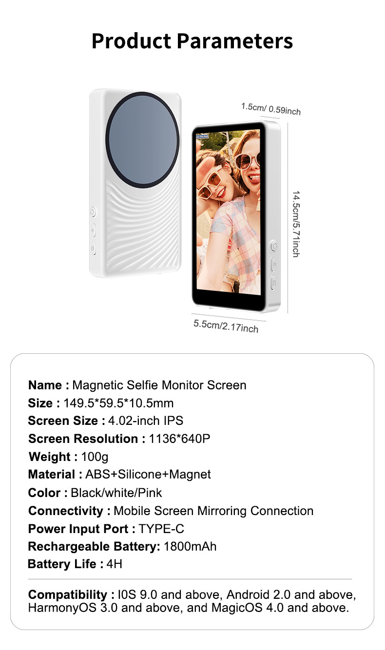 手机自拍无线同屏器摄影监测显示屏后置摄像头后置自拍磁吸同屏器