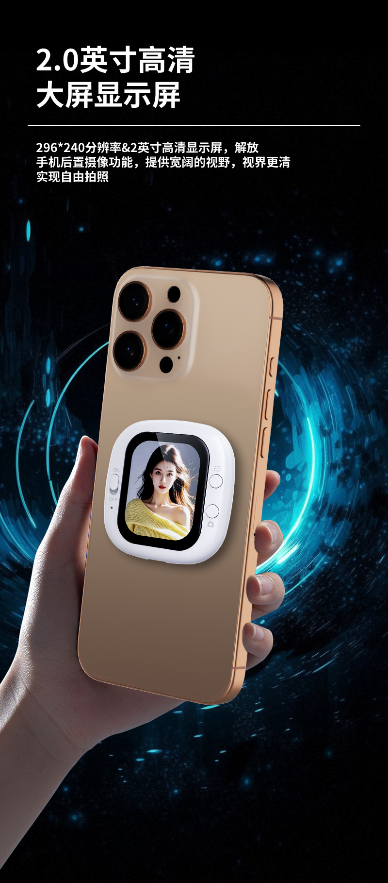 Mini自拍屏适用iphone17promax苹果手机有线磁吸后置自拍显示屏
