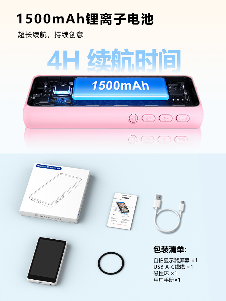 手机自拍无线按键投屏器后置分屏直播自拍磁吸手机同屏器