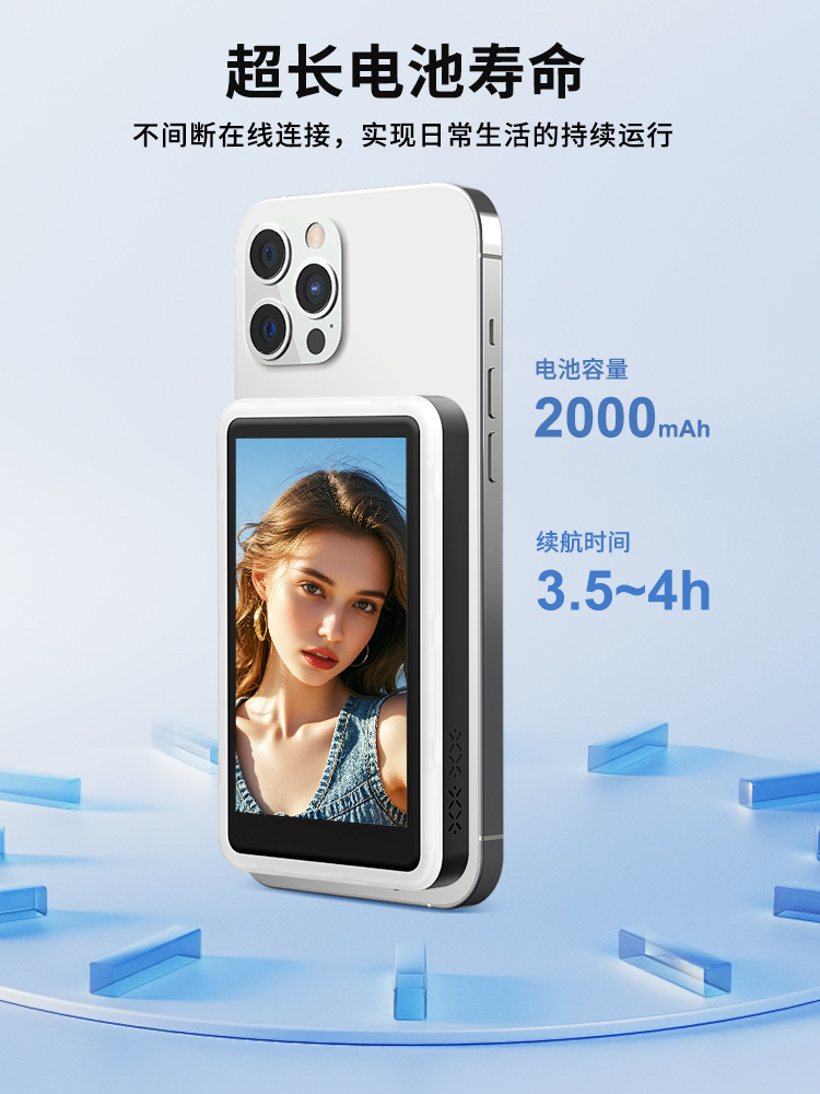 手机自拍同屏器蓝牙显示器直播摄影磁吸显示屏后置投屏器带补光灯