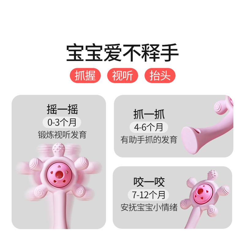婴幼儿食品级硅胶磨牙棒安抚摩天轮牙胶防吃手可水煮宝宝咬胶玩具