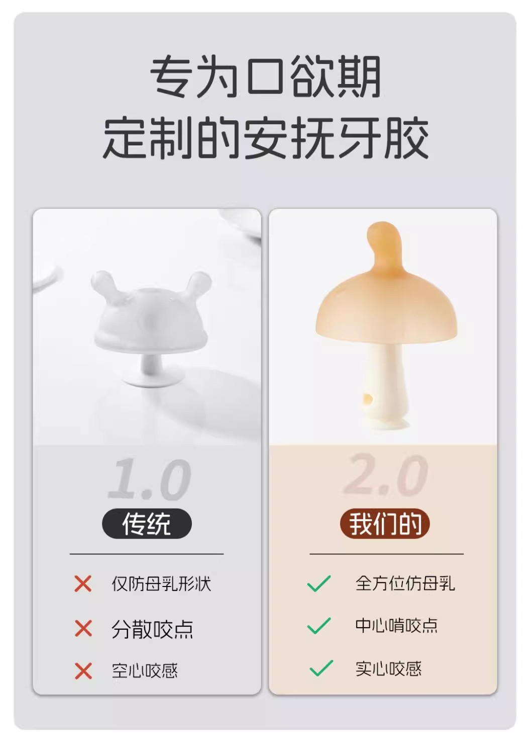 婴儿牙胶防吃手小月龄磨牙棒小蘑菇咬胶安抚口欲