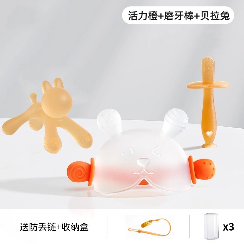 - 橙色半抓兔+磨牙棒+硅胶链+2个盒