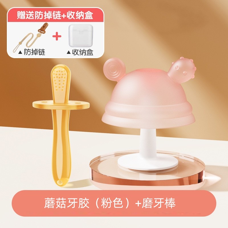 - 蘑菇牙胶(粉色)+磨牙棒(黄色)+收纳盒+防掉链
