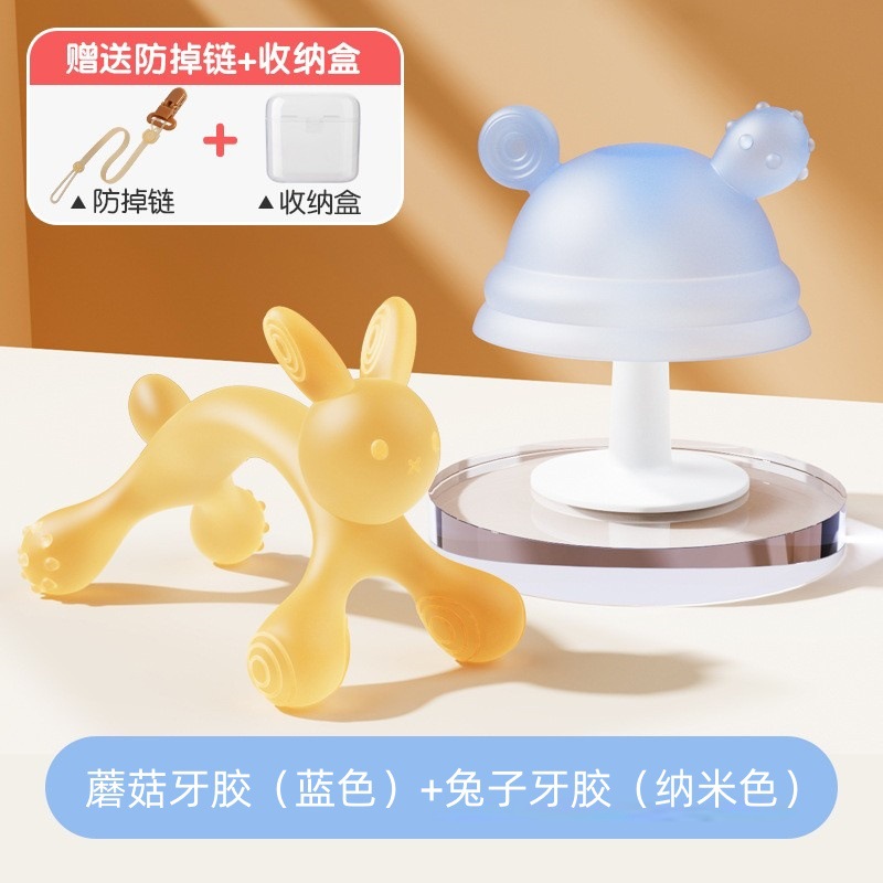 - 蘑菇牙胶(蓝色)+兔子牙胶(黄色)+收纳盒+防掉链