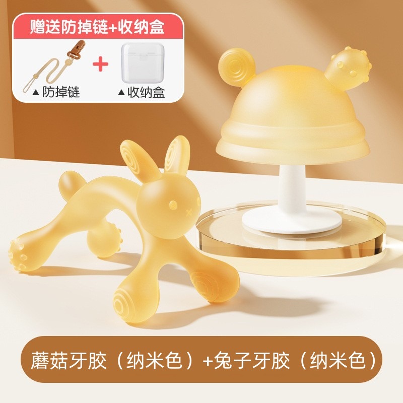 - 蘑菇牙胶(粉色)+兔子牙胶(纳米色)+收纳盒+防掉链