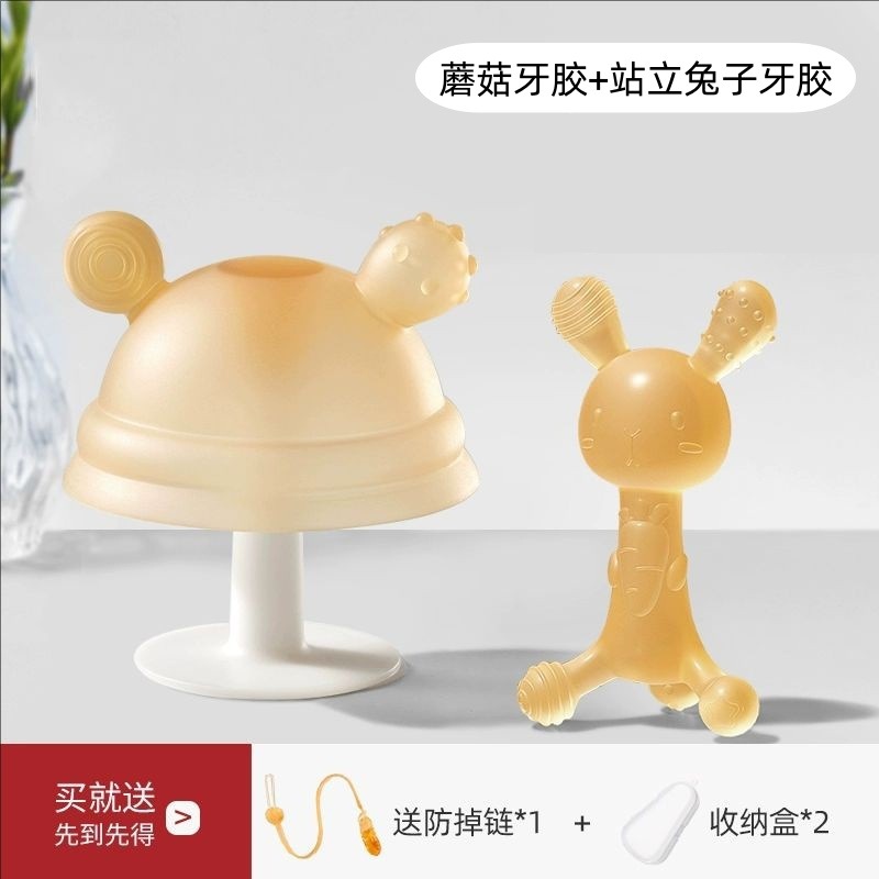 - 蘑菇牙胶(黄色)+兔子牙胶(黄色)+收纳盒+防掉链