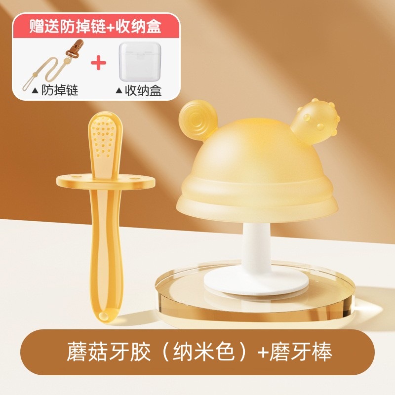 - 蘑菇牙胶(纳米色)+磨牙棒(黄色)+收纳盒+防掉链