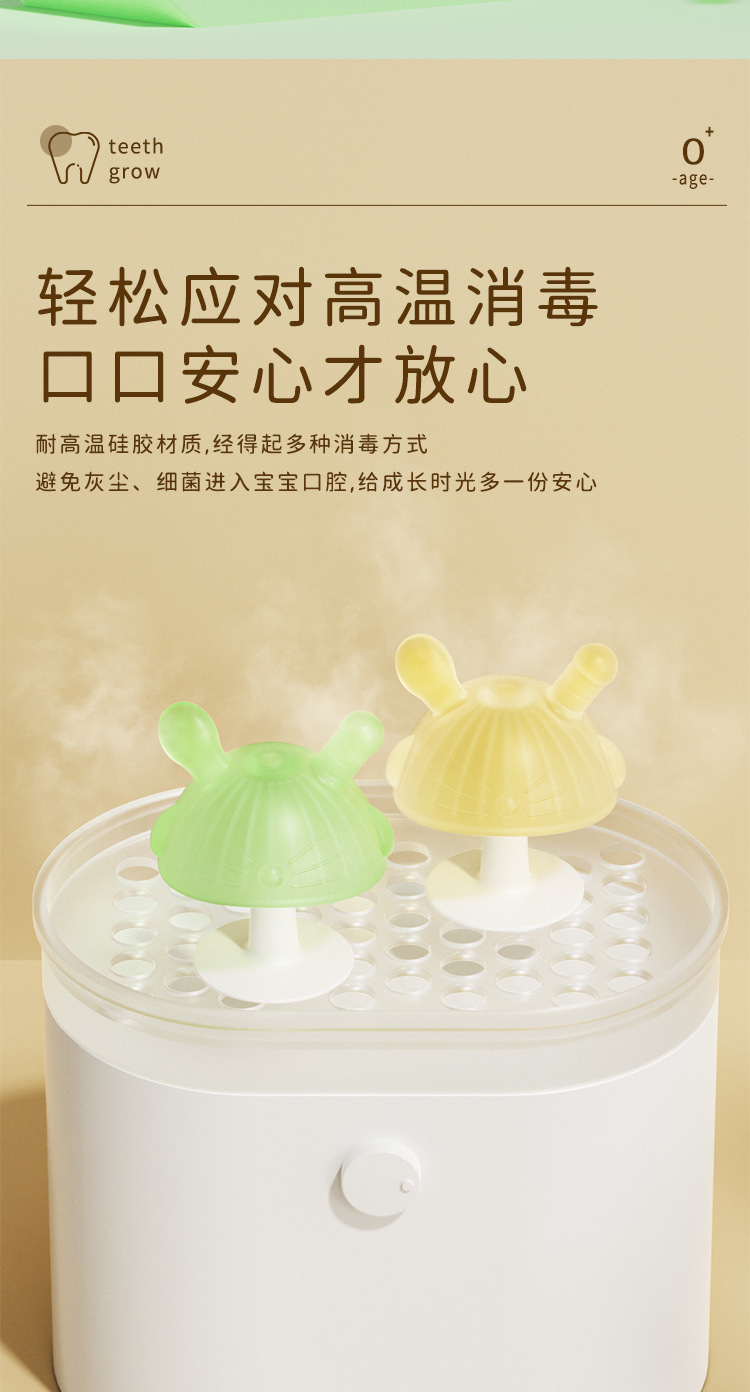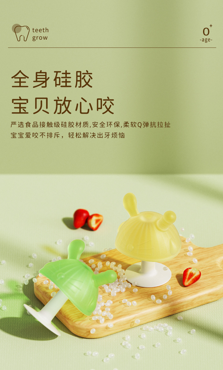 蘑菇牙胶婴幼儿磨牙棒硅胶可水煮咬咬胶防吃手神器口欲期安抚奶嘴
