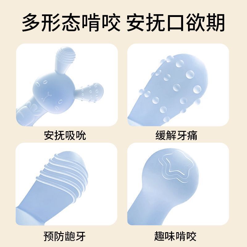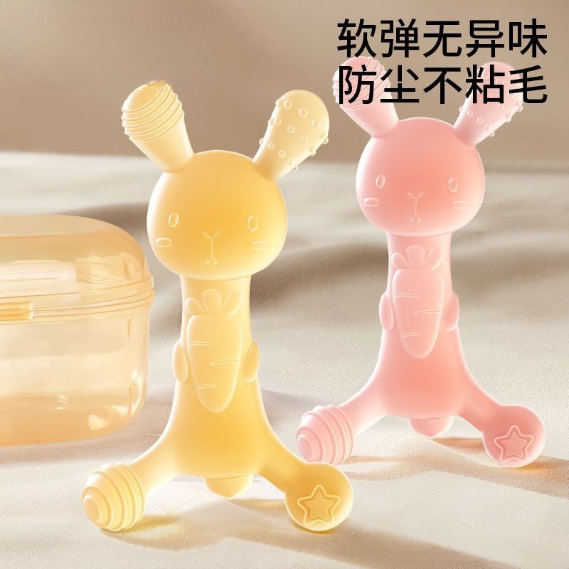 小兔子牙胶婴儿磨牙棒安抚不粘毛硅胶出牙期防吃手可水煮玩具