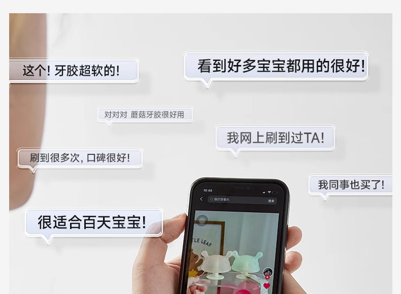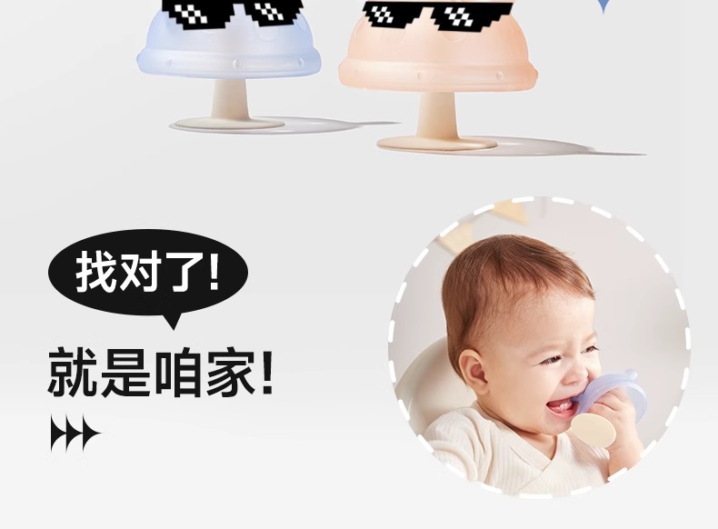 爱咔威IKV婴儿蘑菇牙胶食品级磨牙棒宝宝玩具防吃手神器安抚咬胶
