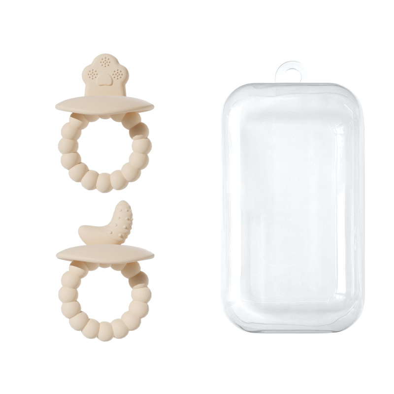 - 婴儿牙胶(米白色)+两个装+PP收纳盒